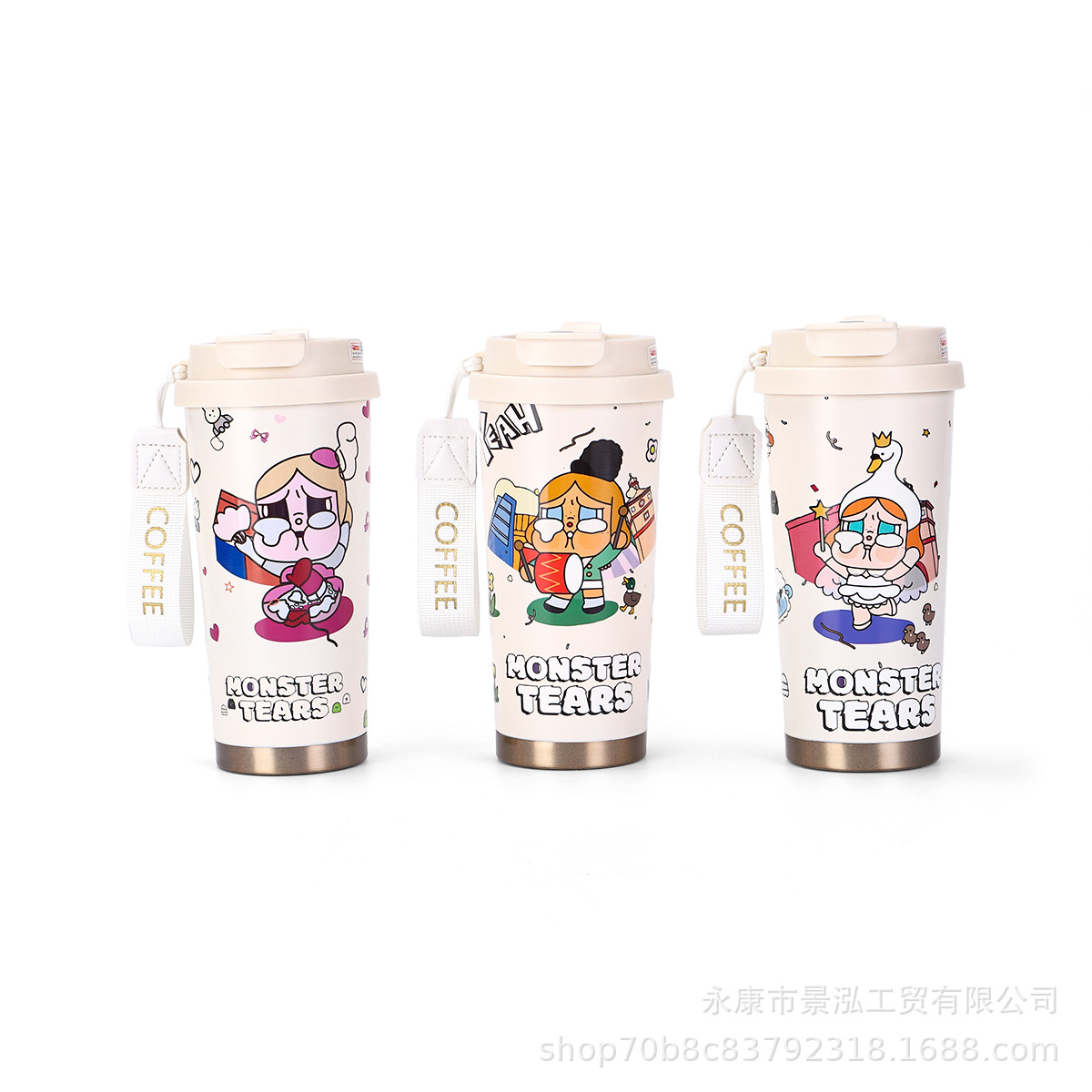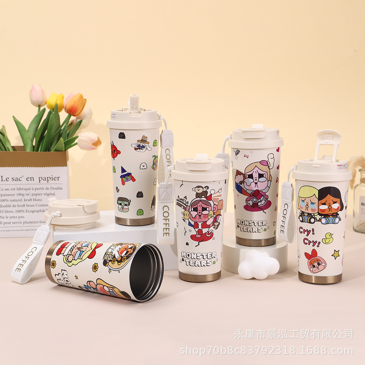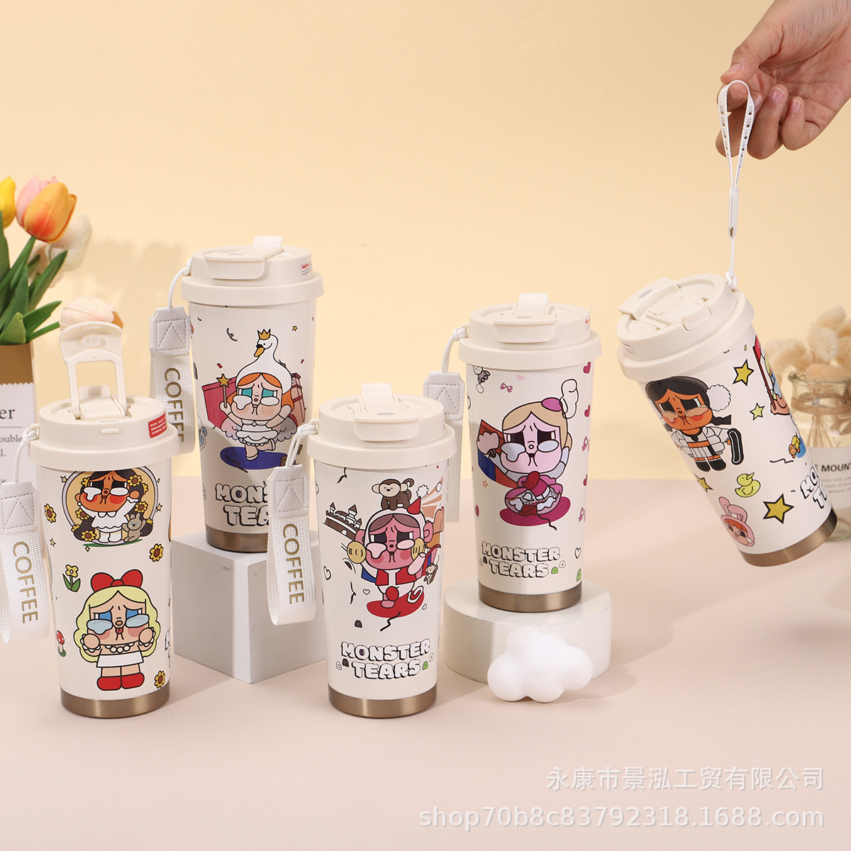 新款316不锈钢保温杯高颜值可爱卡通铃兰杯户外便携带提绳双饮杯