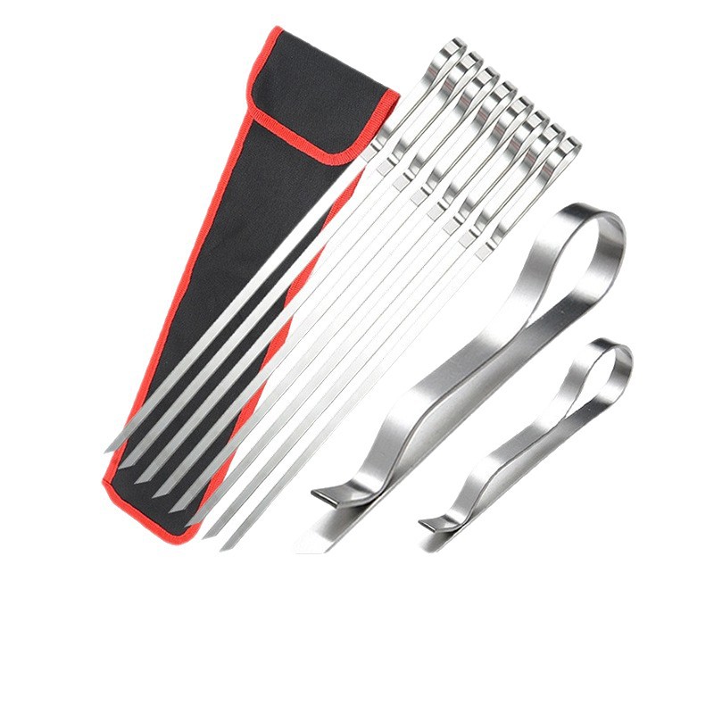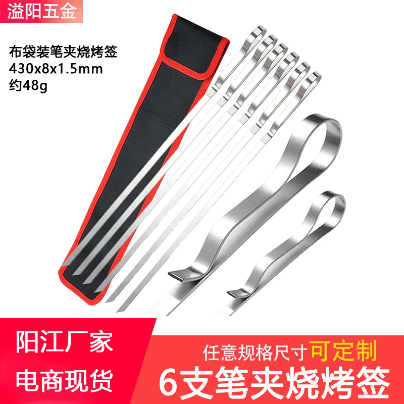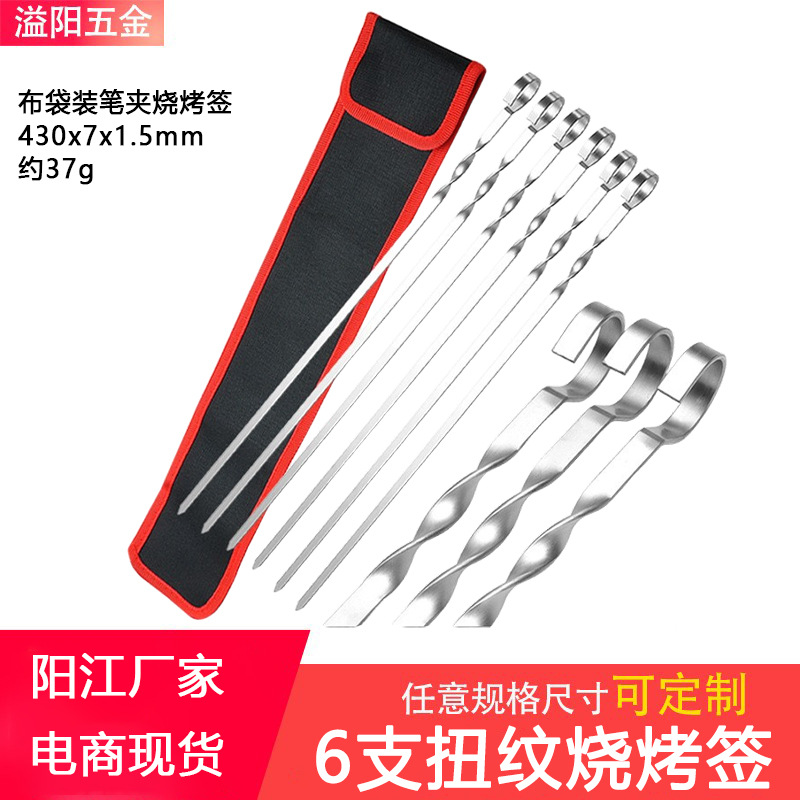 跨境430不锈钢笔夹波浪形烧烤签子 亚马逊户外烤肉串BBQ烤签套装