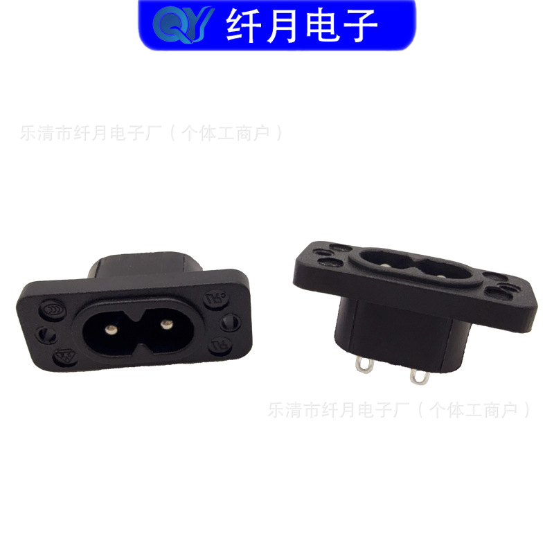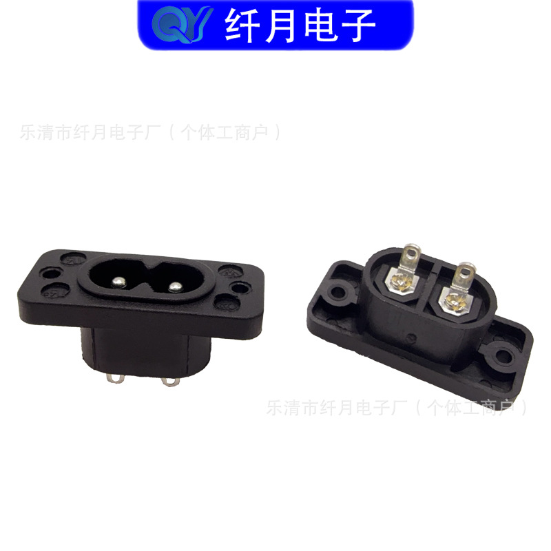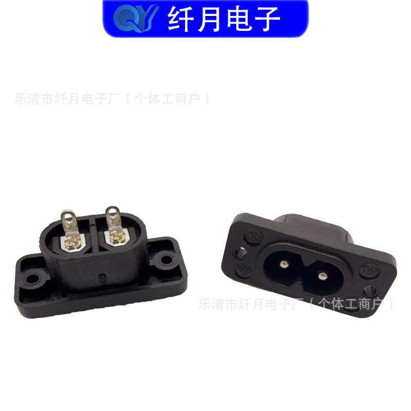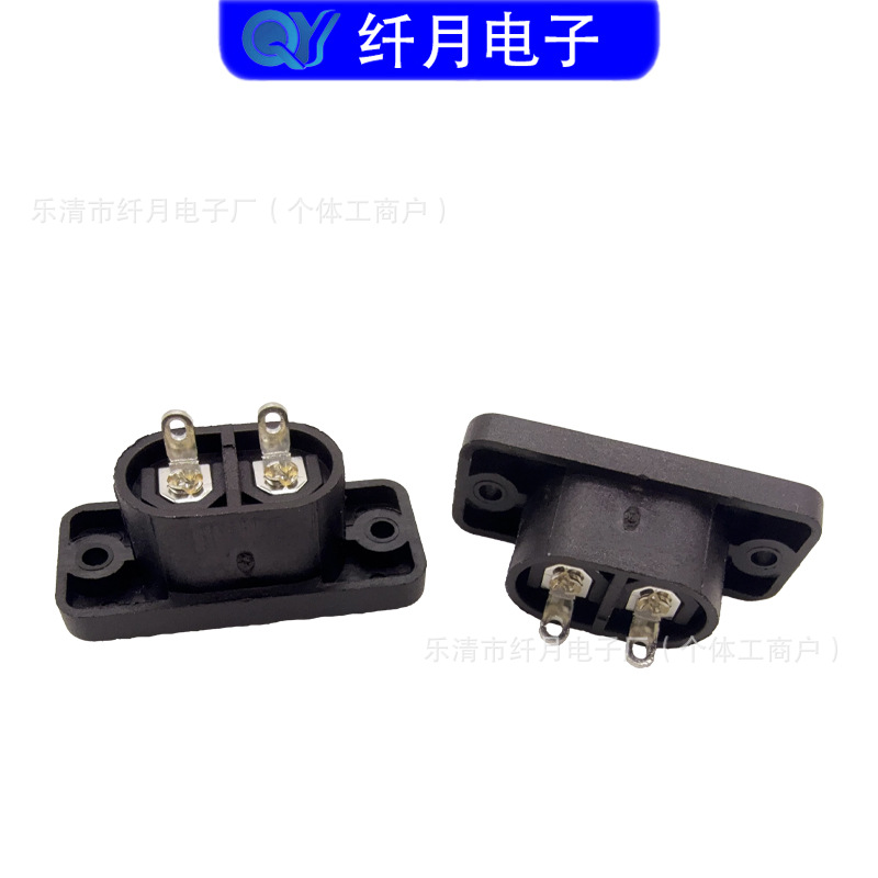 AC插座 DB-8-058字插座带耳朵锁式两脚两铜芯两孔 嵌入式电源插座