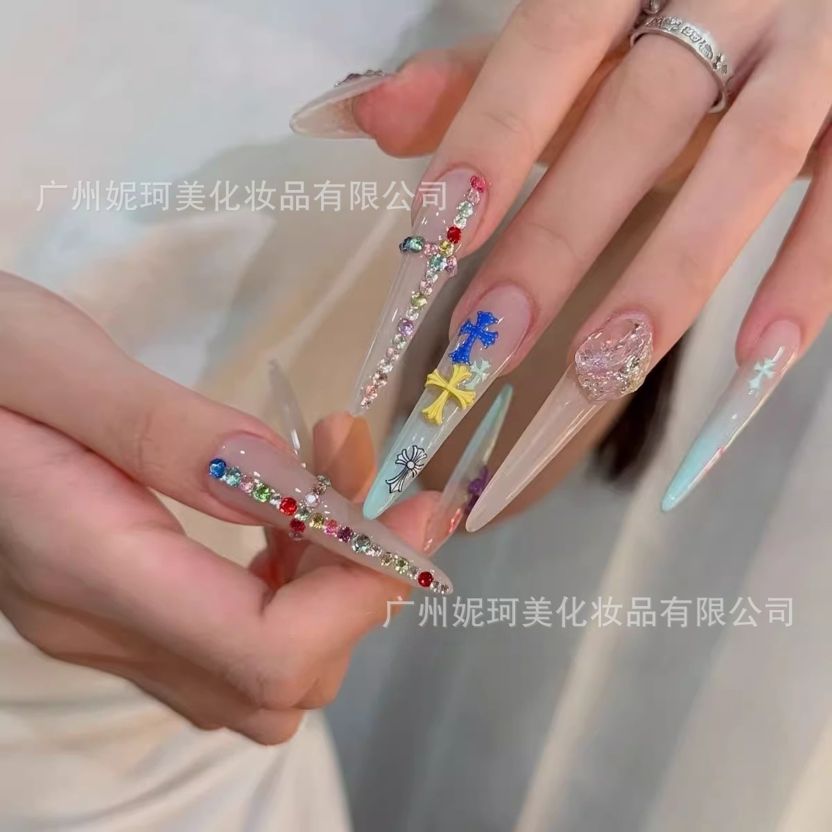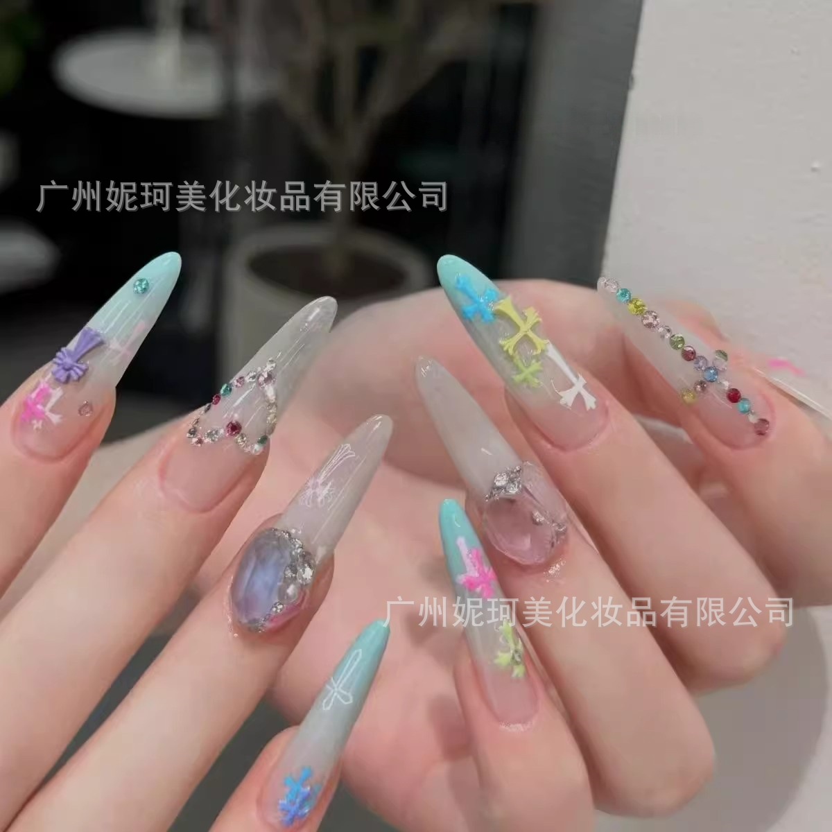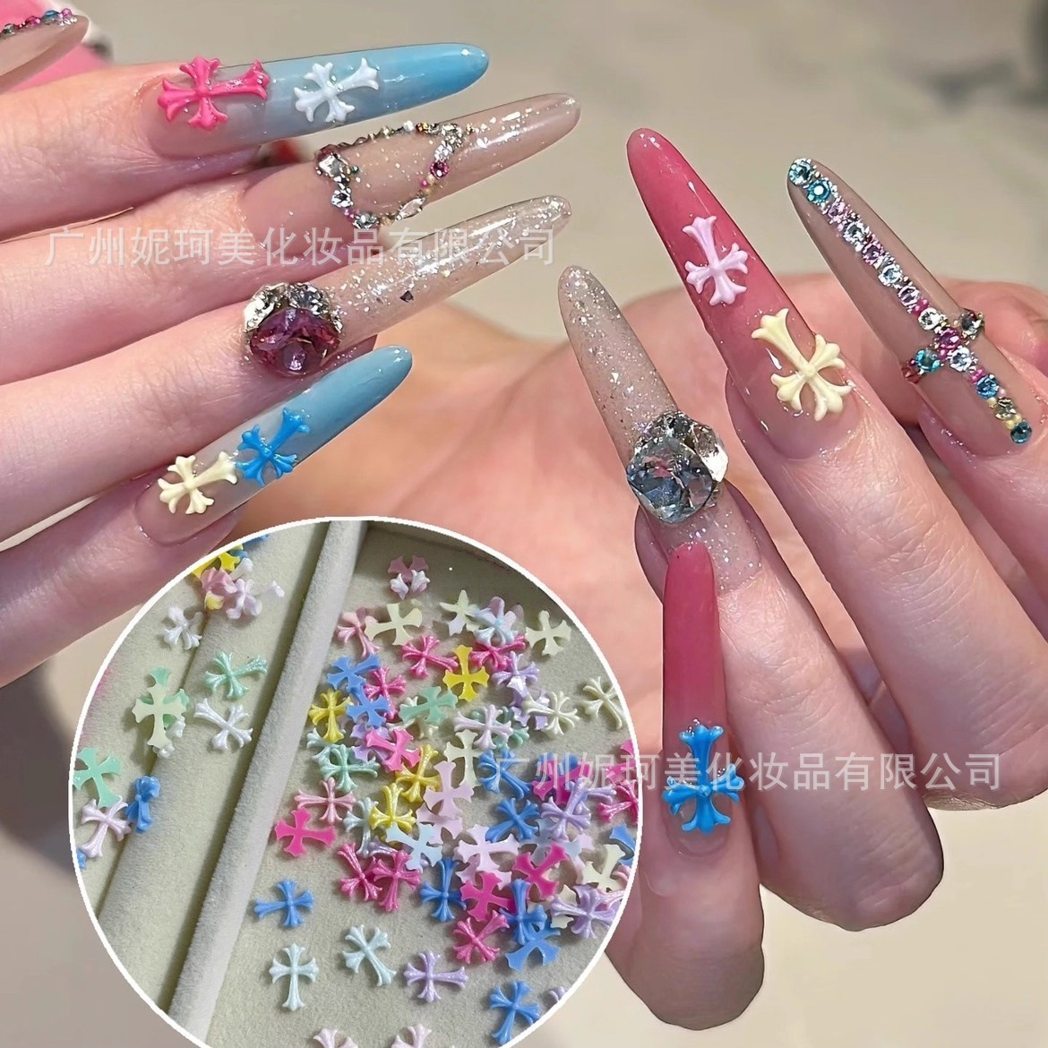 多巴胺彩色克罗十字架美甲小饰品网红爆款穿戴甲光疗甲配饰钻工具