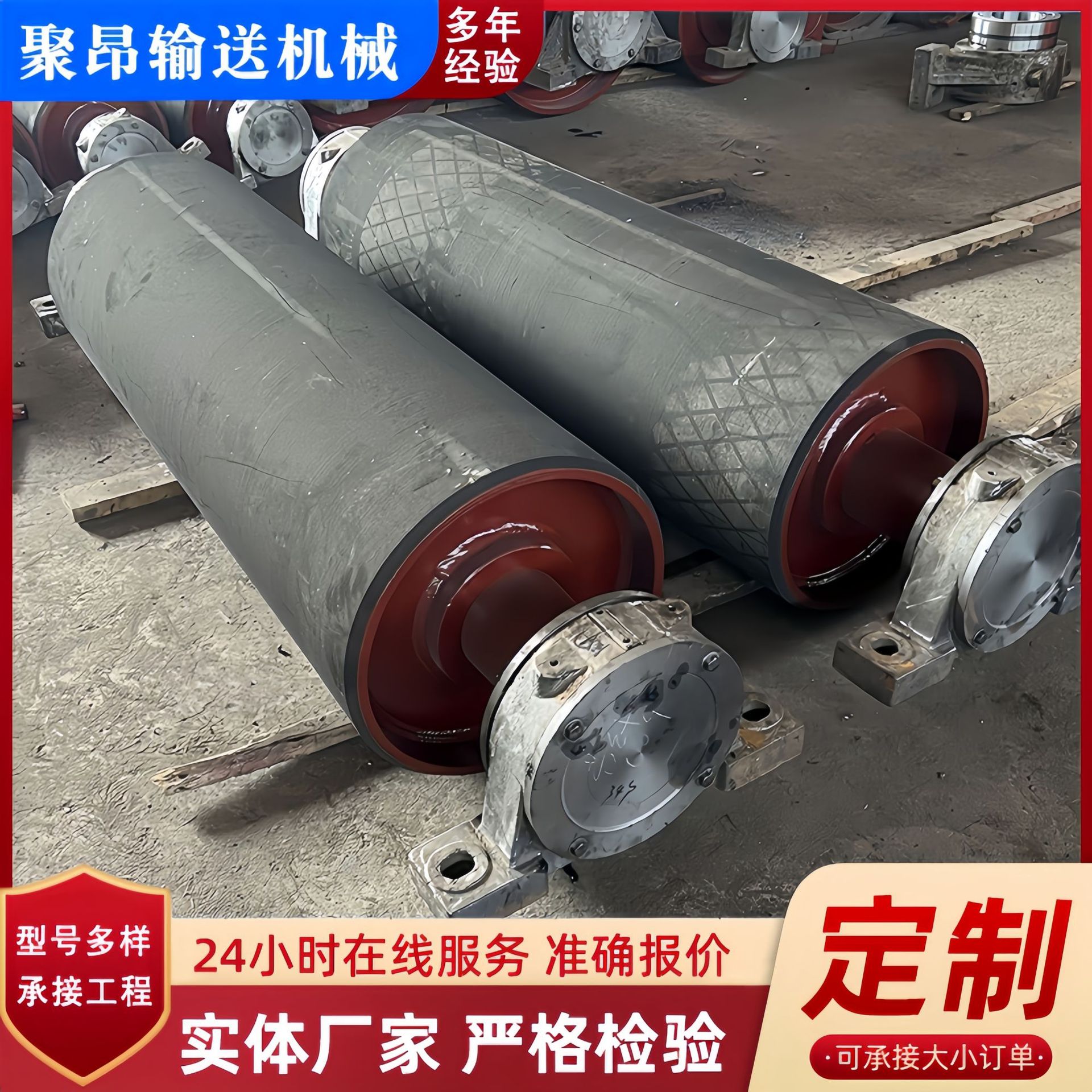 定制输送带主动驱动滚筒主动改向包胶滚筒钢筋柱笼排渣滚筒