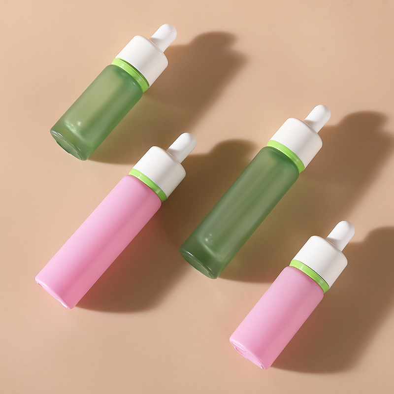 现货5-30ml圆柱精华原液瓶 双层圈化妆品精油瓶子 黄蓝渐变滴管瓶