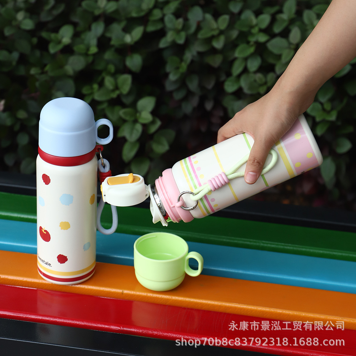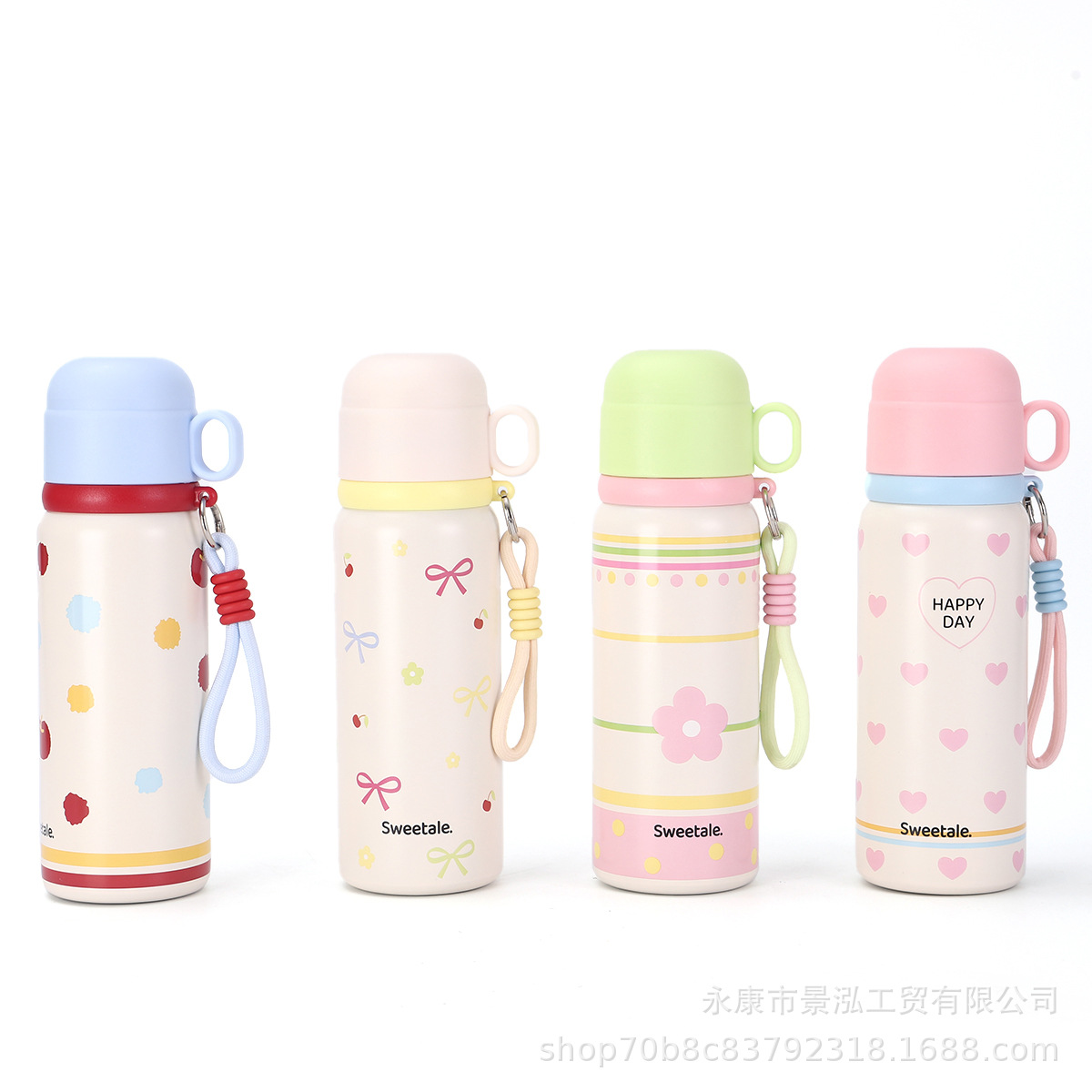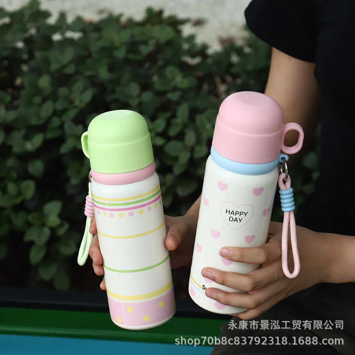 新款316不锈钢真空保温杯高颜值三饮弹跳杯便携提绳大容量吸管杯