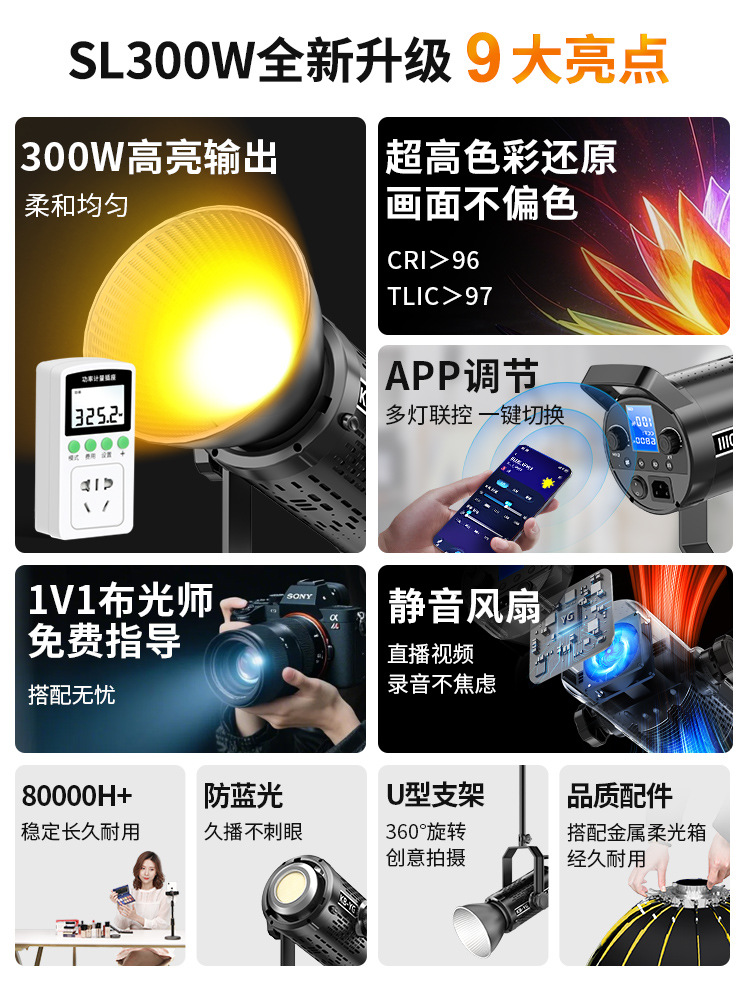 颜色 | 【重要】:升级SL300W|XX同款灯珠|拒绝品牌溢价 | | 颜色 | SL300II影室灯*1 |