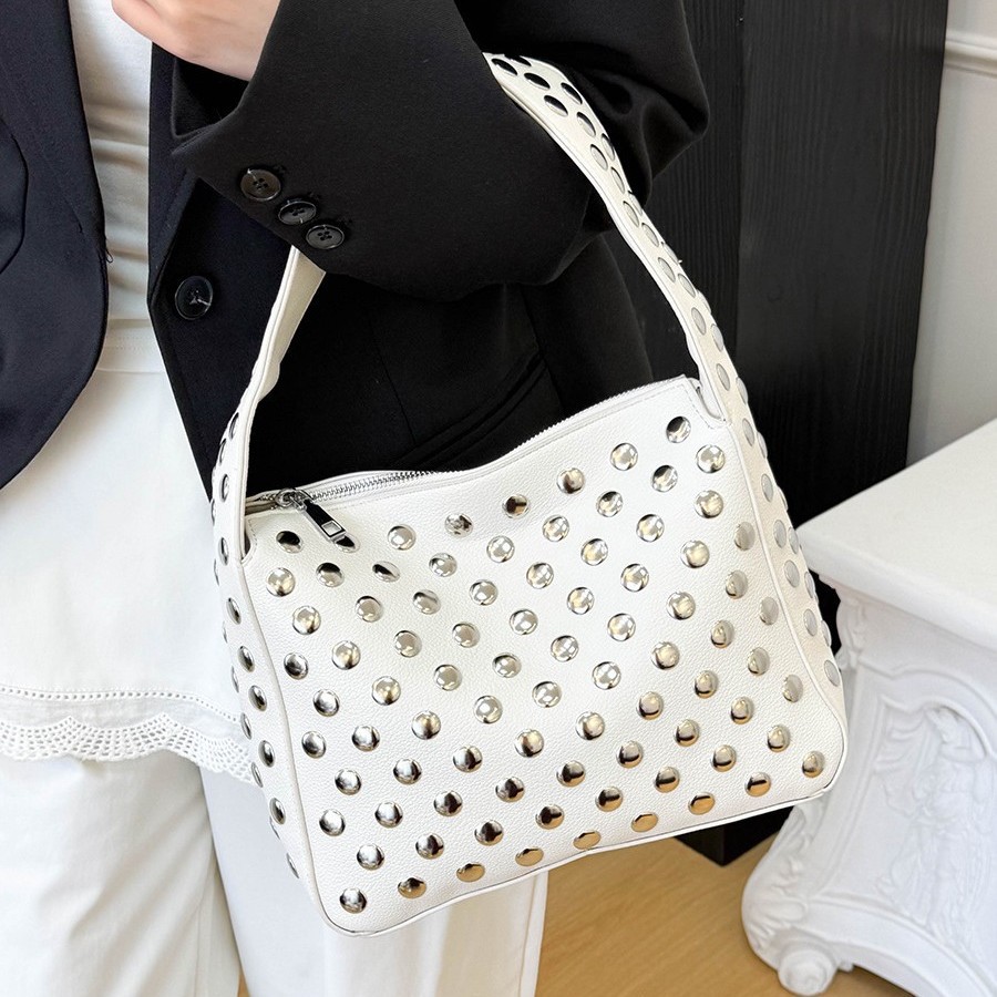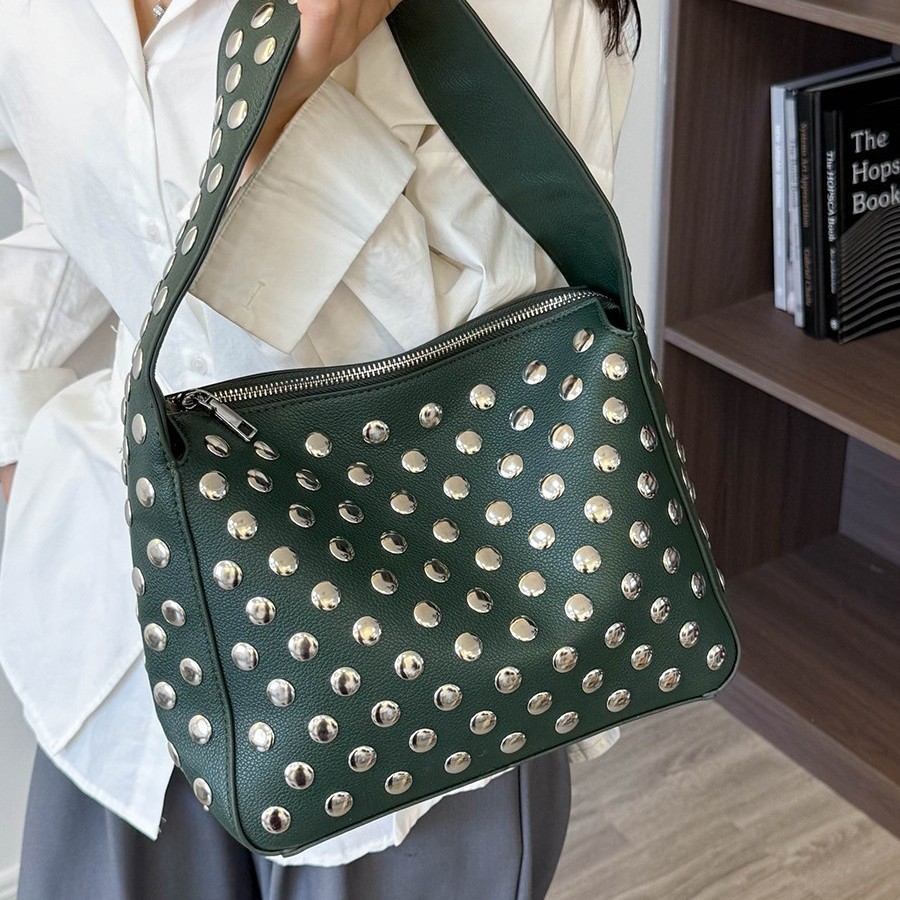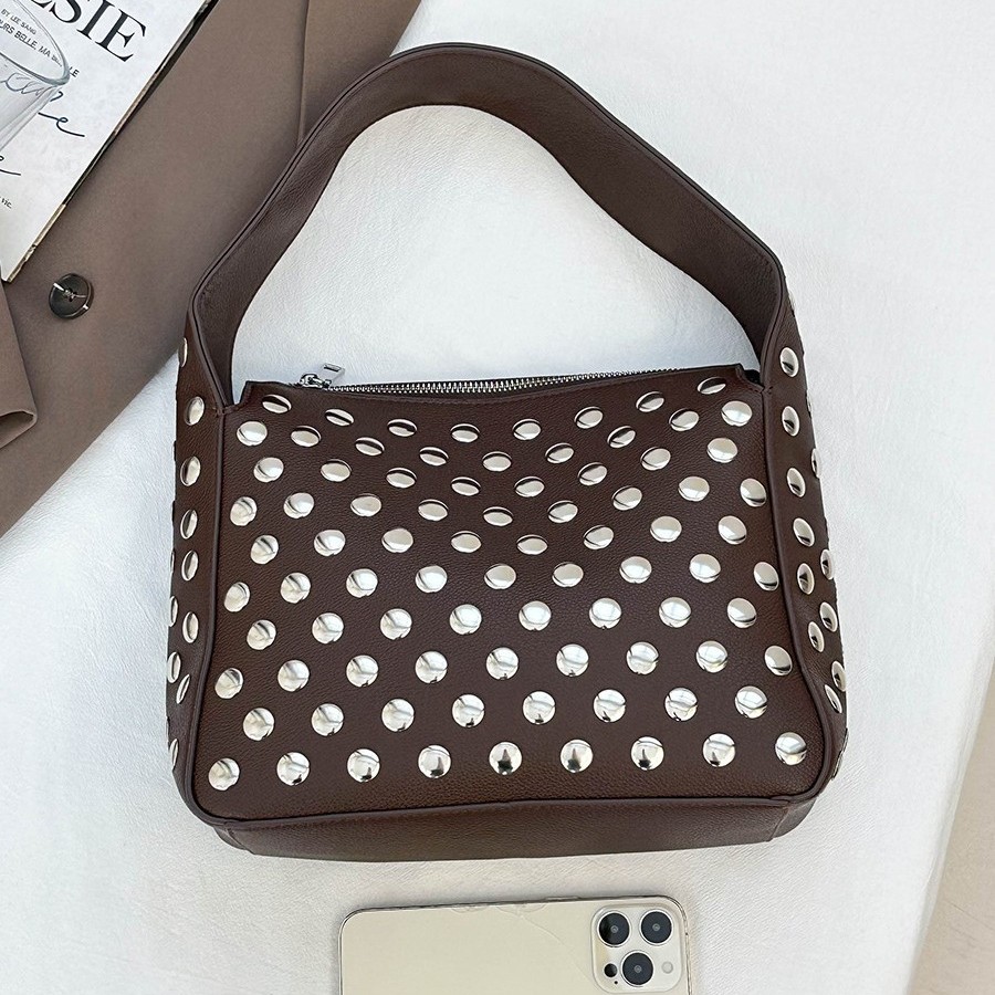 2025新款潮机车满天星铆钉装饰托特包女时尚百搭大容量手提单肩包