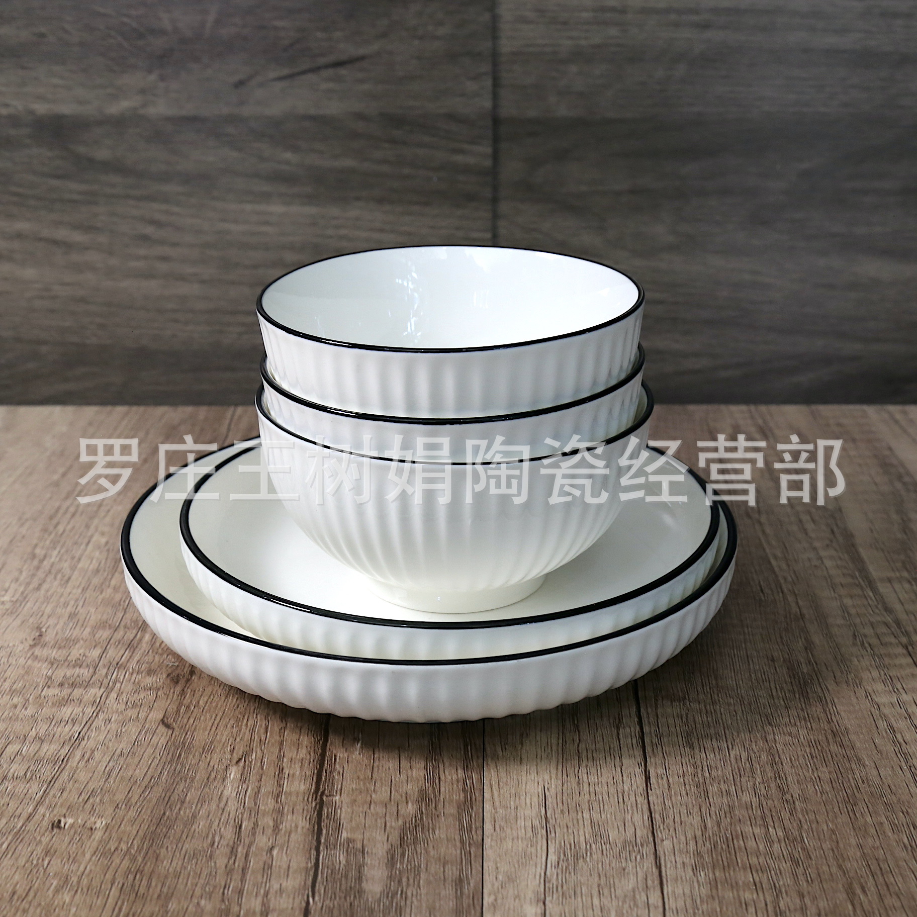 山田碗盘日式陶瓷ins高颜值黑边加厚家用碗盘菜碟米饭碗盘套装