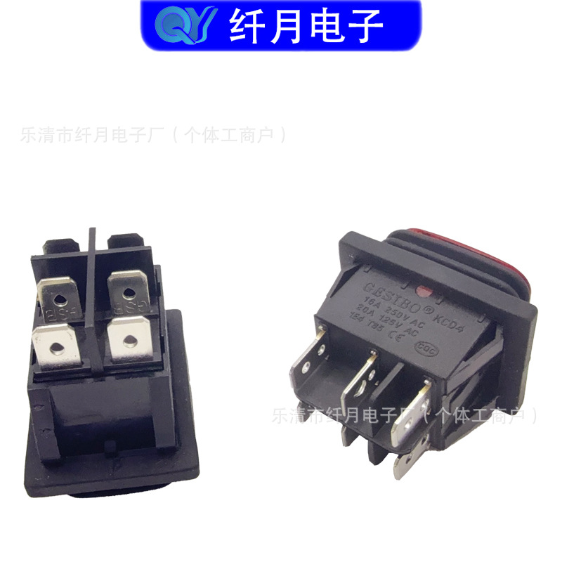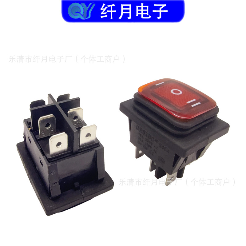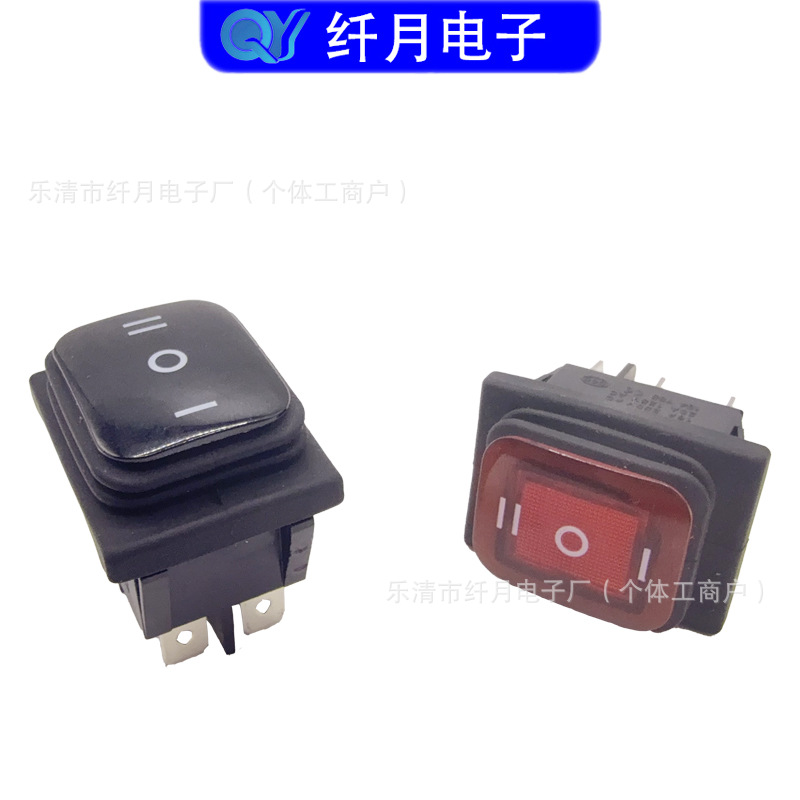 船型开关KCD4 6脚3档 防水开关16A翘板带灯多颜色电源开关