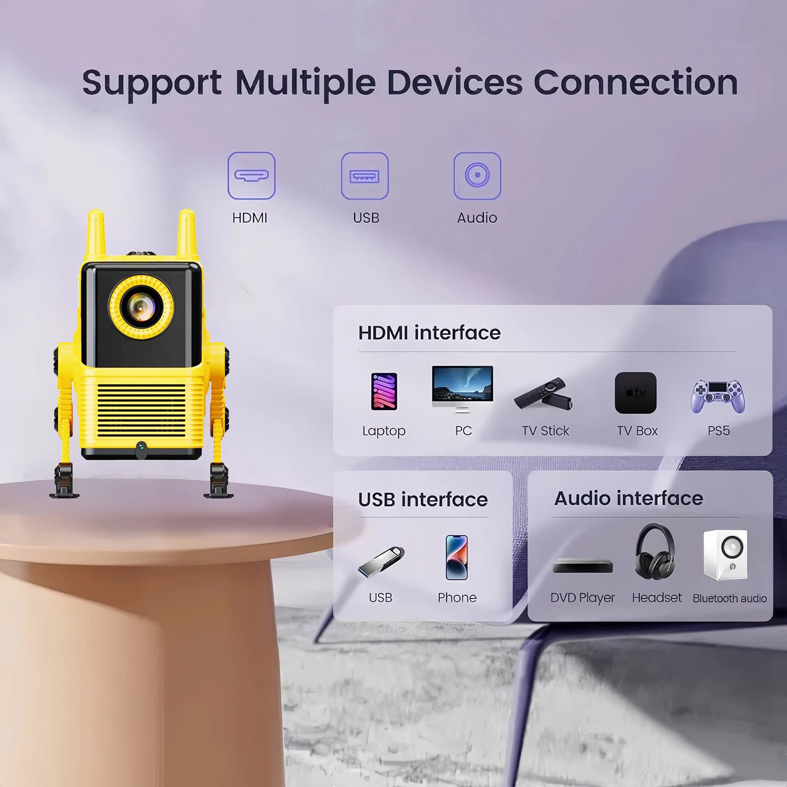 【2025跨境爆款】机器人投影仪家庭影院4k超清便携式宿舍投影机H8