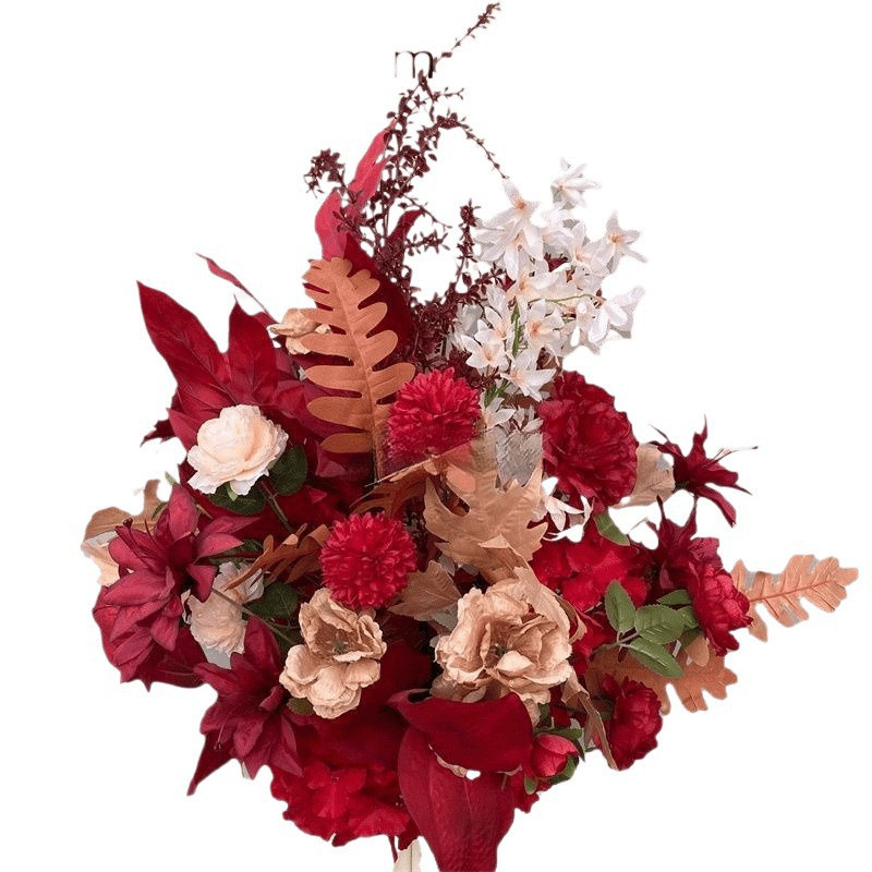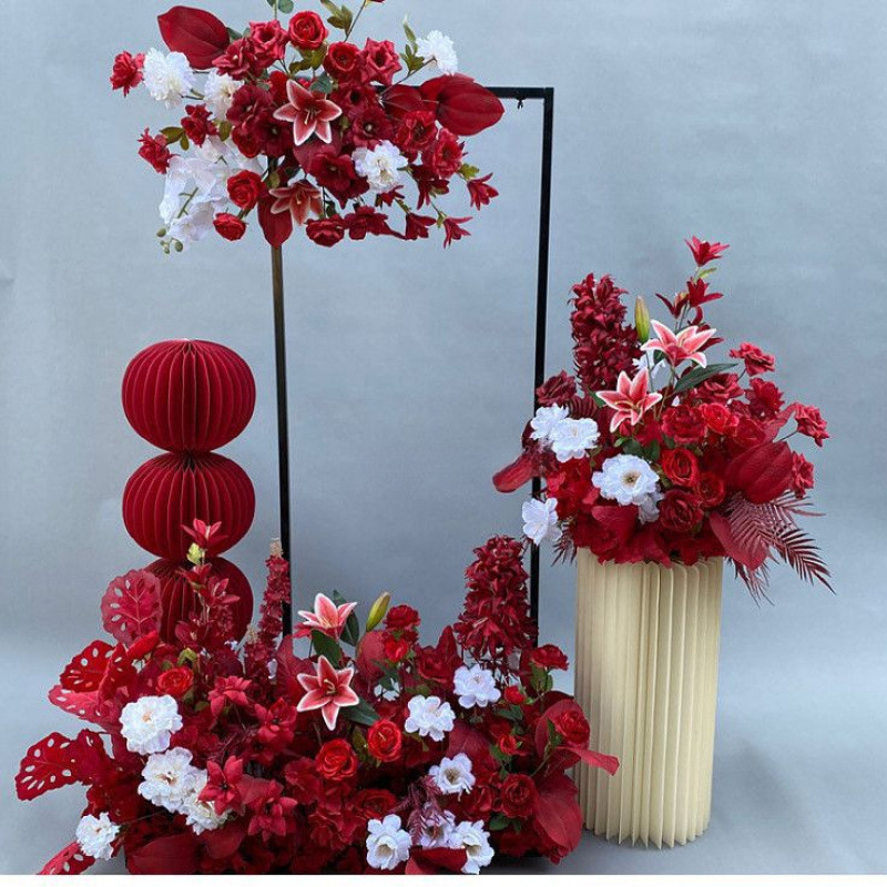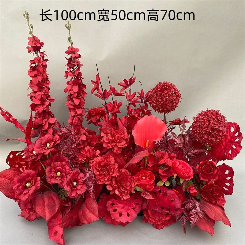 婚庆地排花红色中式订婚宴布置婚礼堂舞台路引花婚庆绢花排仿真花