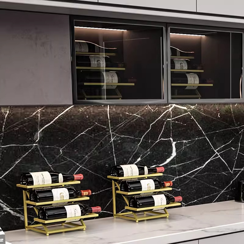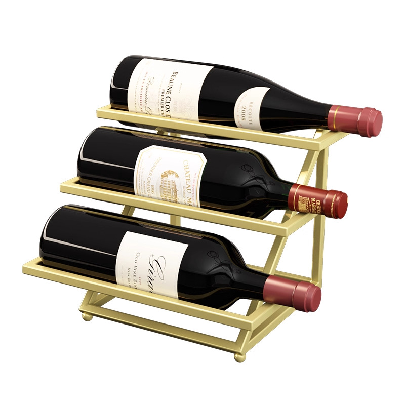 阶梯酒架三瓶金色
