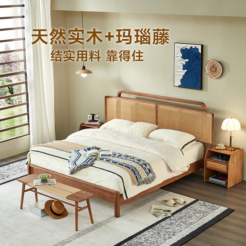 星港大床实木床现代简约1.8米双人床主卧大床全实木民宿实木床