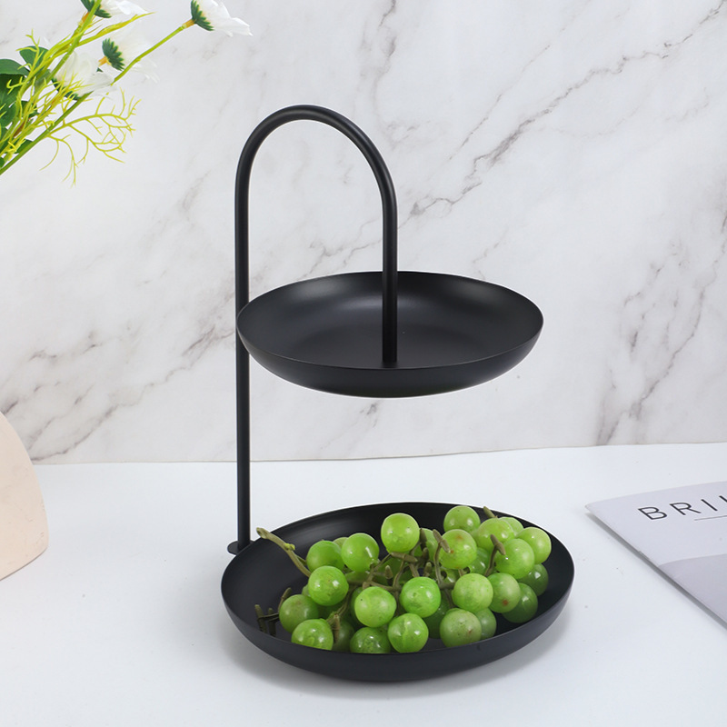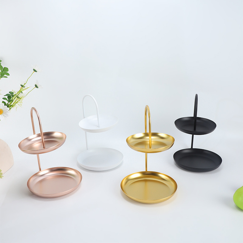 北欧轻奢铁艺客厅水果盘创意家用糖果零食多功能双层网红托盘