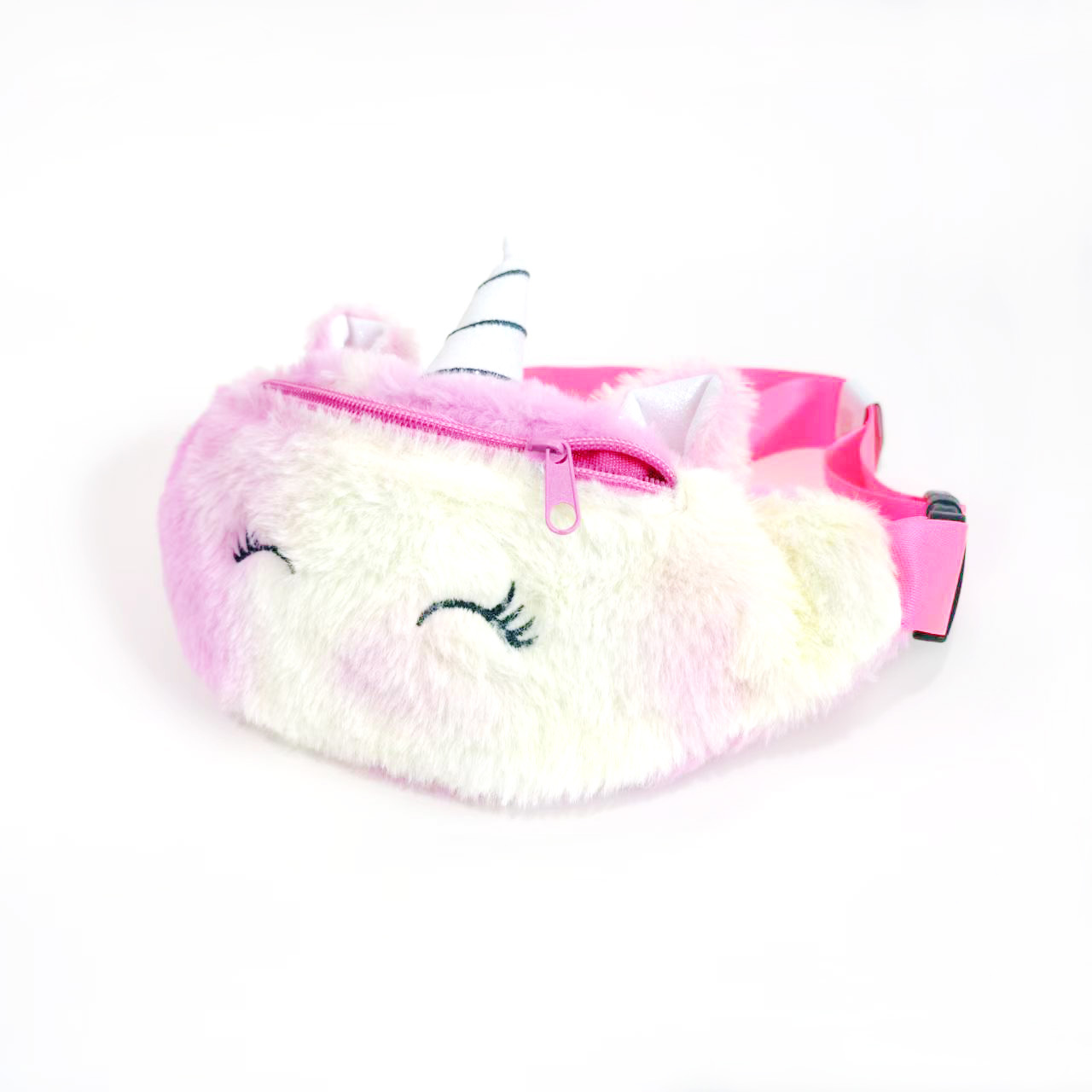 跨境热卖毛绒独角兽斜挎腰包 梦幻渐变卡通造型 儿童出行单肩小包