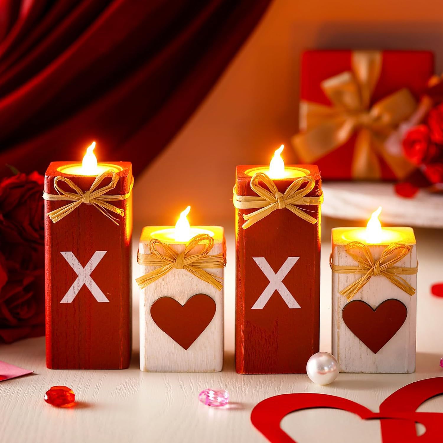 跨境新款木质心形蜡烛台木制创意婚庆装饰情人节日氛围灯桌面摆件