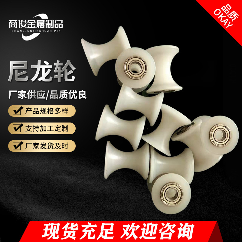 MC尼龙滑轮输送设备用PA6轴承滚轮H型V型浇筑含油槽轮塑料齿轮
