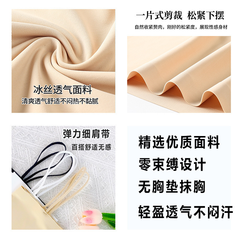夏季薄款冰丝无痕吊带内衣抹胸无胸垫单层性感打底长款背心上衣女