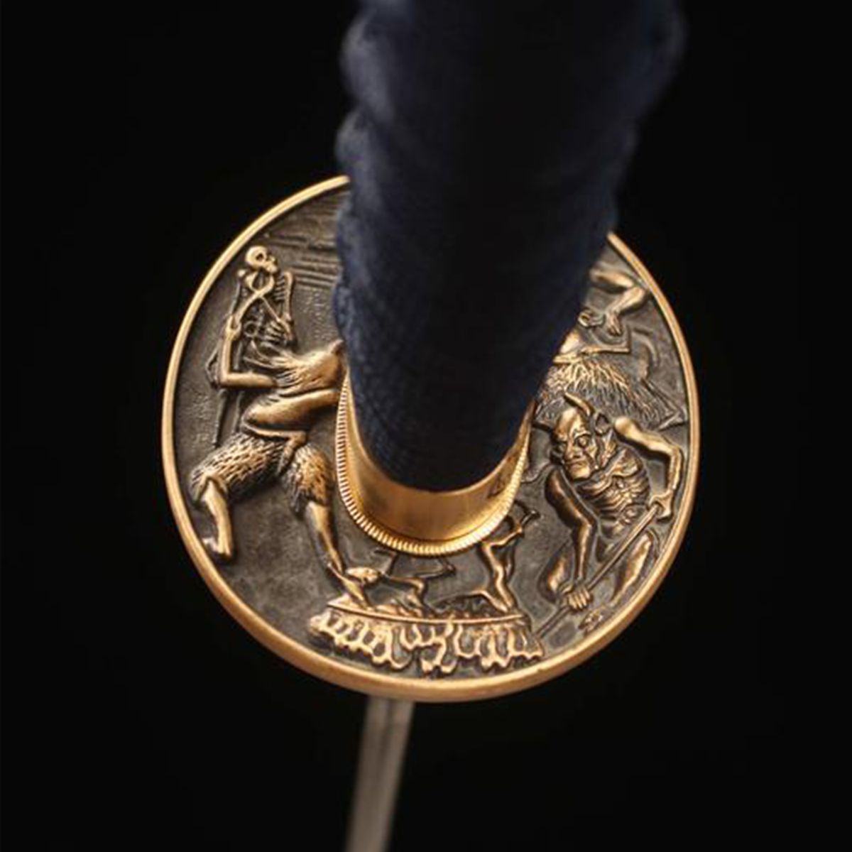 龙泉刀剑宝剑花纹钢手工锻打小乌丸日式打刀纯铜仿古收藏未开刃
