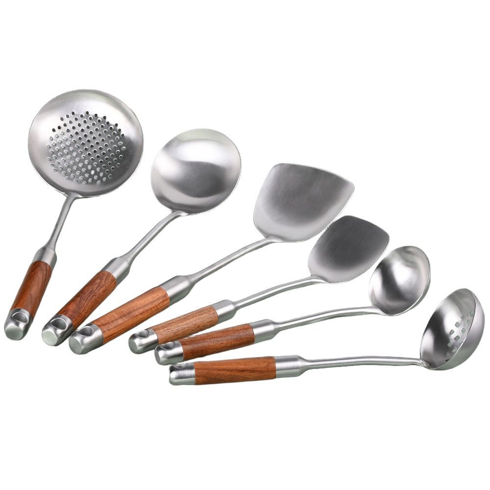304不锈钢锅铲勺套装家用厨具套装厨房花梨木长手柄加厚耐高温