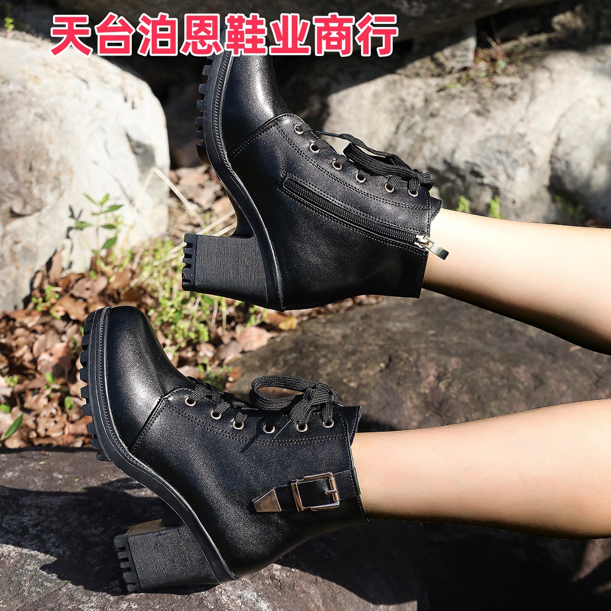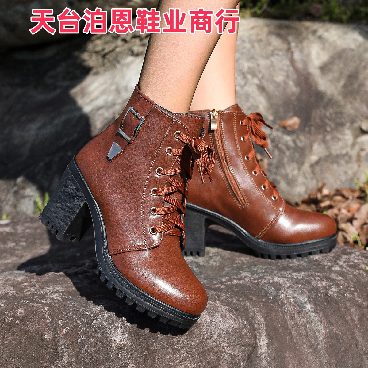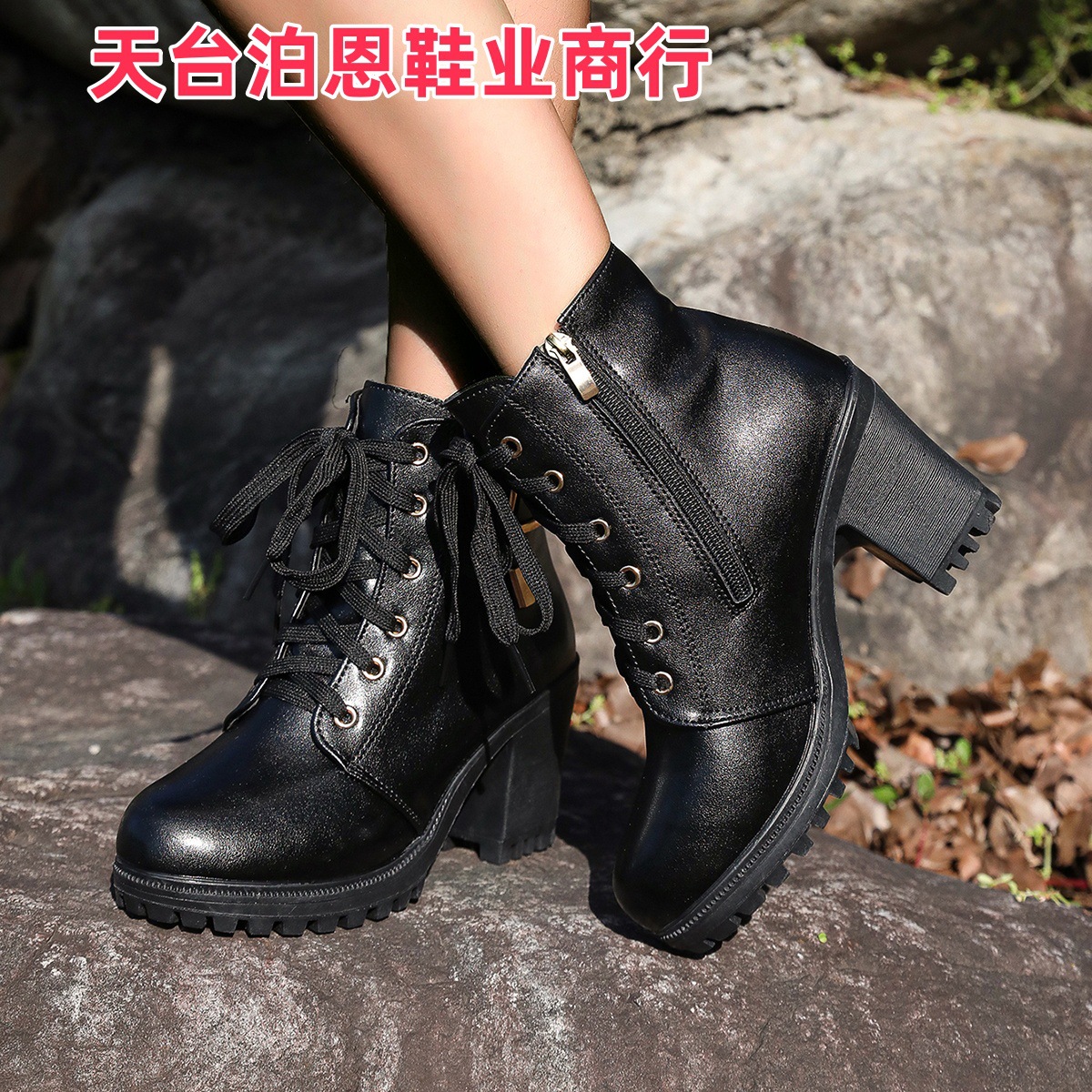 2025欧美时尚春秋新款现货高跟女式时装单鞋外贸圆头大码系带女鞋