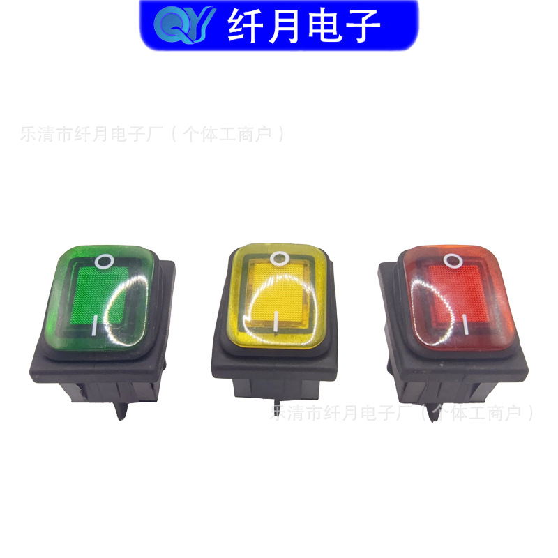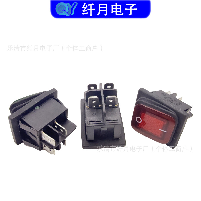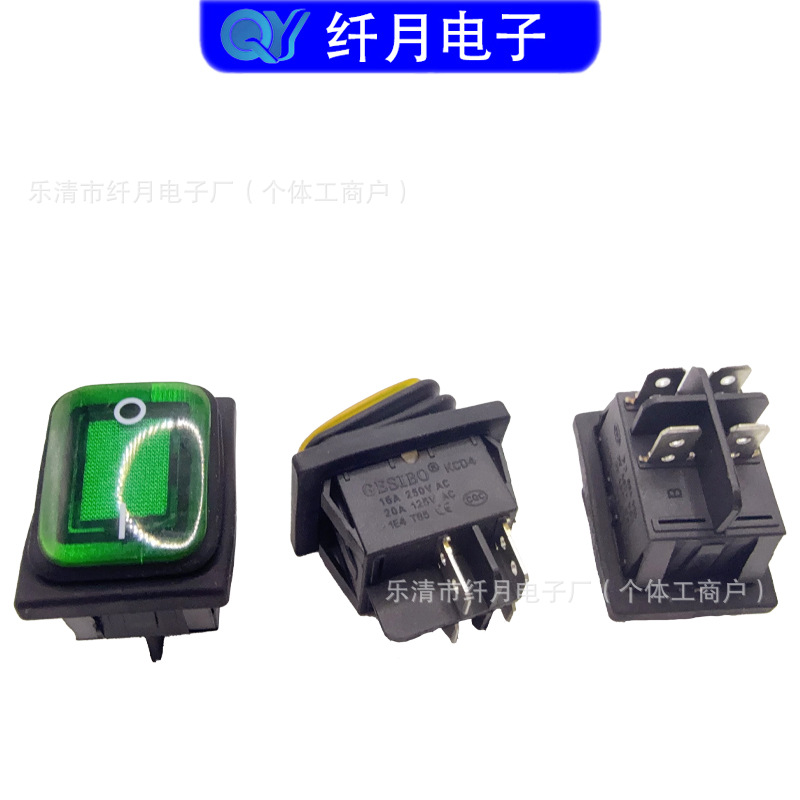 船型开关KCD4 4脚2档防水开关 16A 翘板带灯多种颜色电源开关