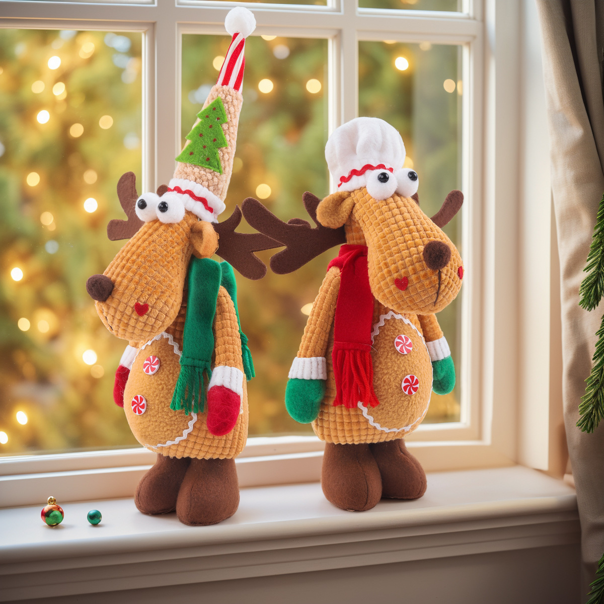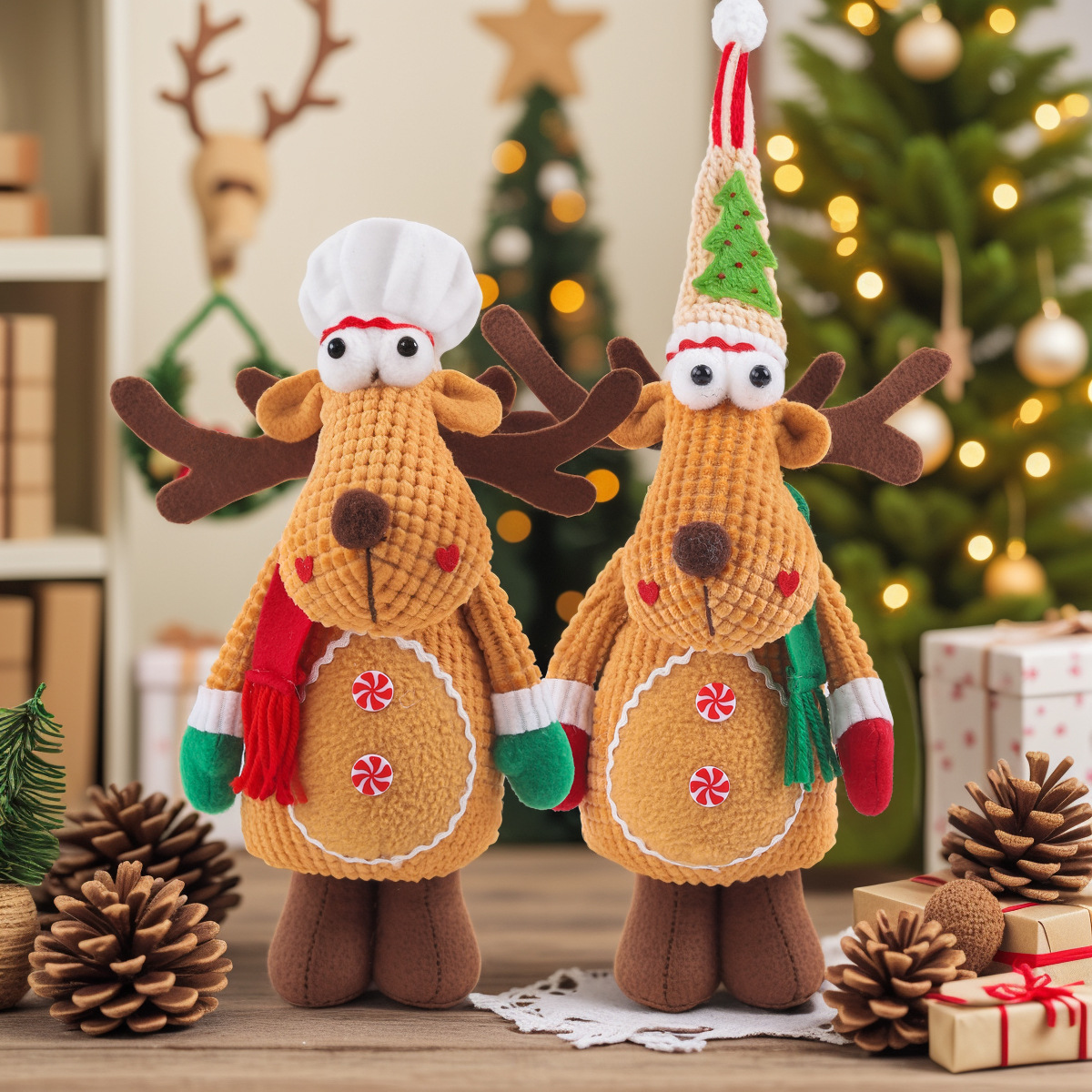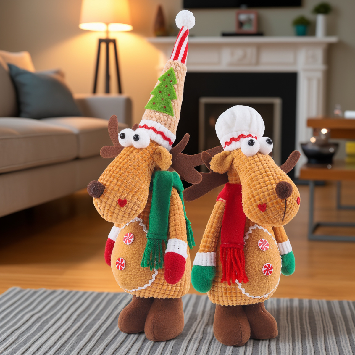 新款圣诞节伸缩公仔圣诞麋鹿公仔家居装饰品玩偶圣诞摆件橱窗摆件