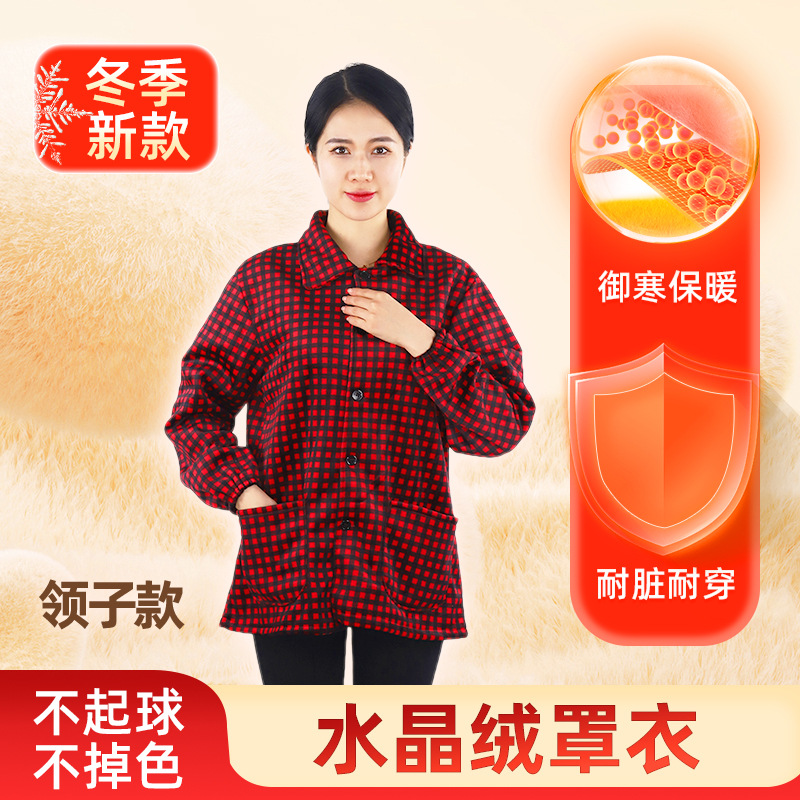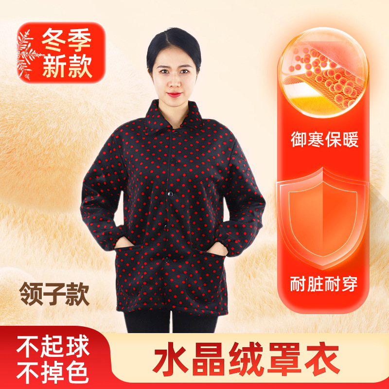 秋冬季羽绒服罩衣妈妈保暖长袖工作服绒面护衣家用厨房中老年围裙