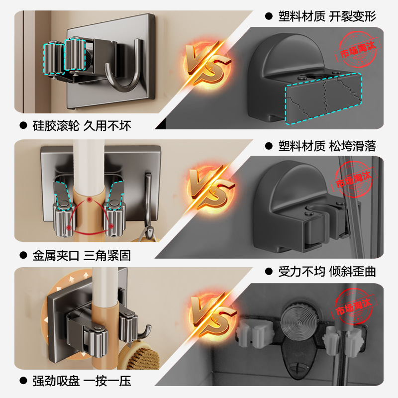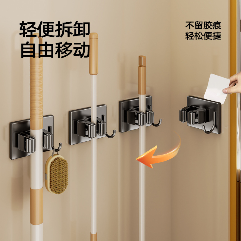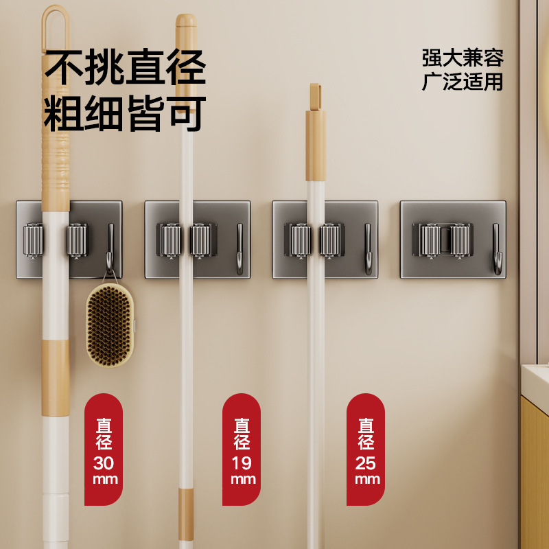 浴室卫生间枪灰拖把夹子挂钩免打孔吸盘不锈钢扫把收纳固定器墙上