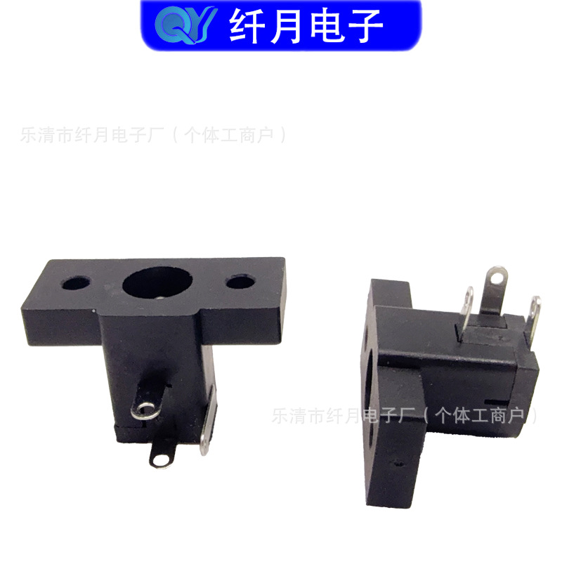 DC插座DC-020 螺丝孔安装面板卧式3脚直流电源插座