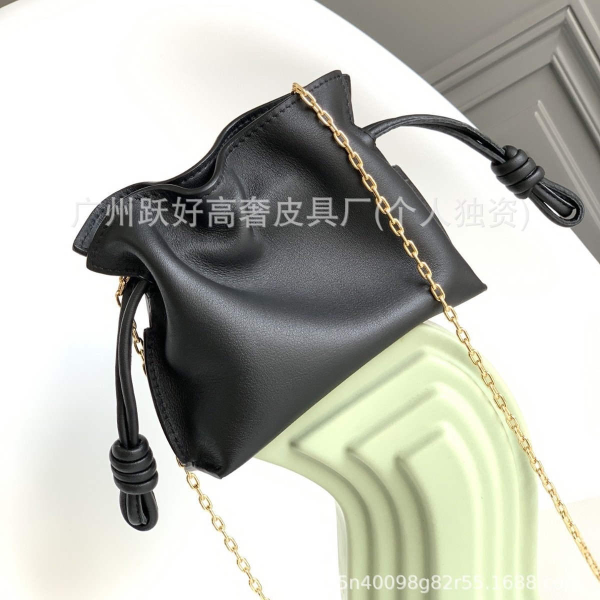 2025罗家小福袋斜跨包褶皱水饺包抽绳水桶包单肩女包链条斜跨女包