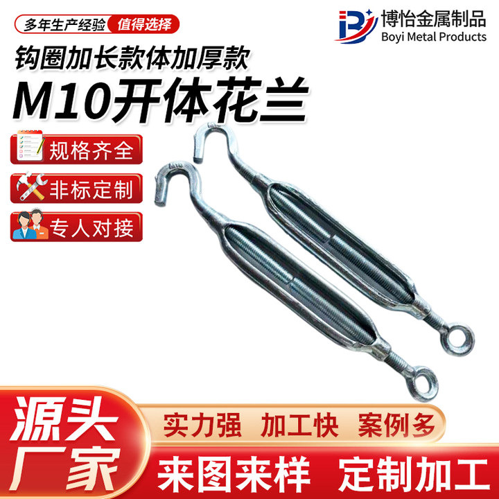 M10重型开体花兰 钢丝绳链条拉紧器模锻开体紧线器开体花兰螺栓
