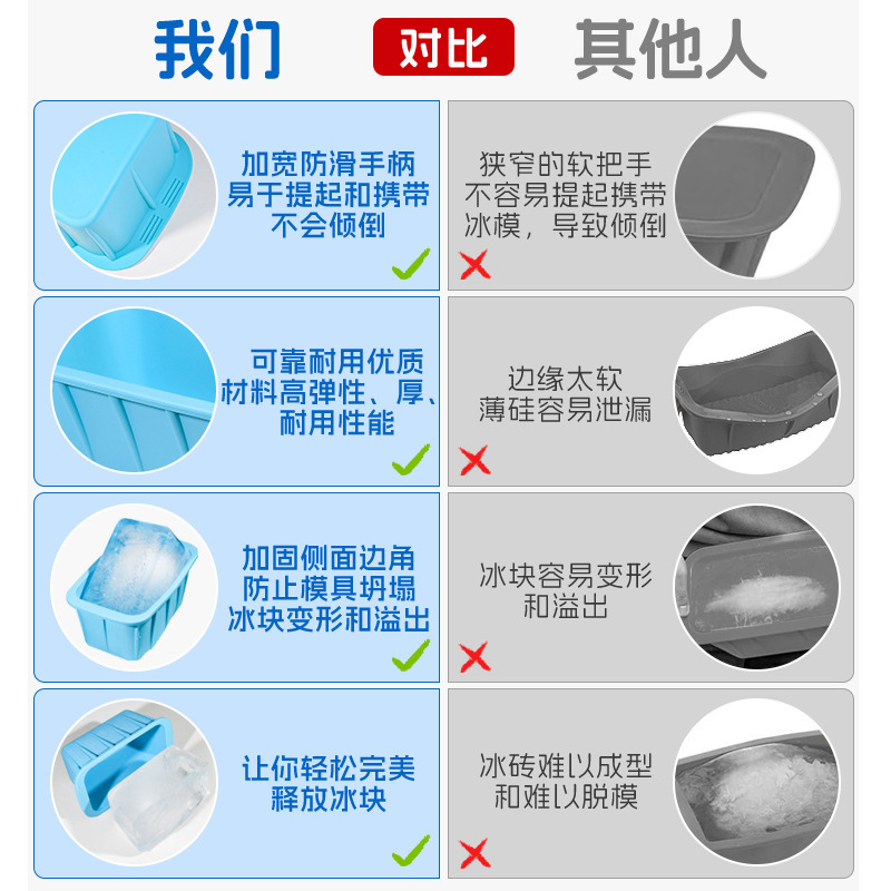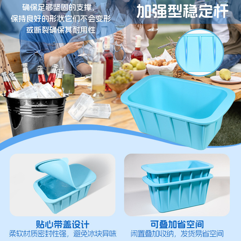 亚马逊热销大块硅胶模具冰盒模具带盖硅胶冰盒超大号冰格冰块膜具