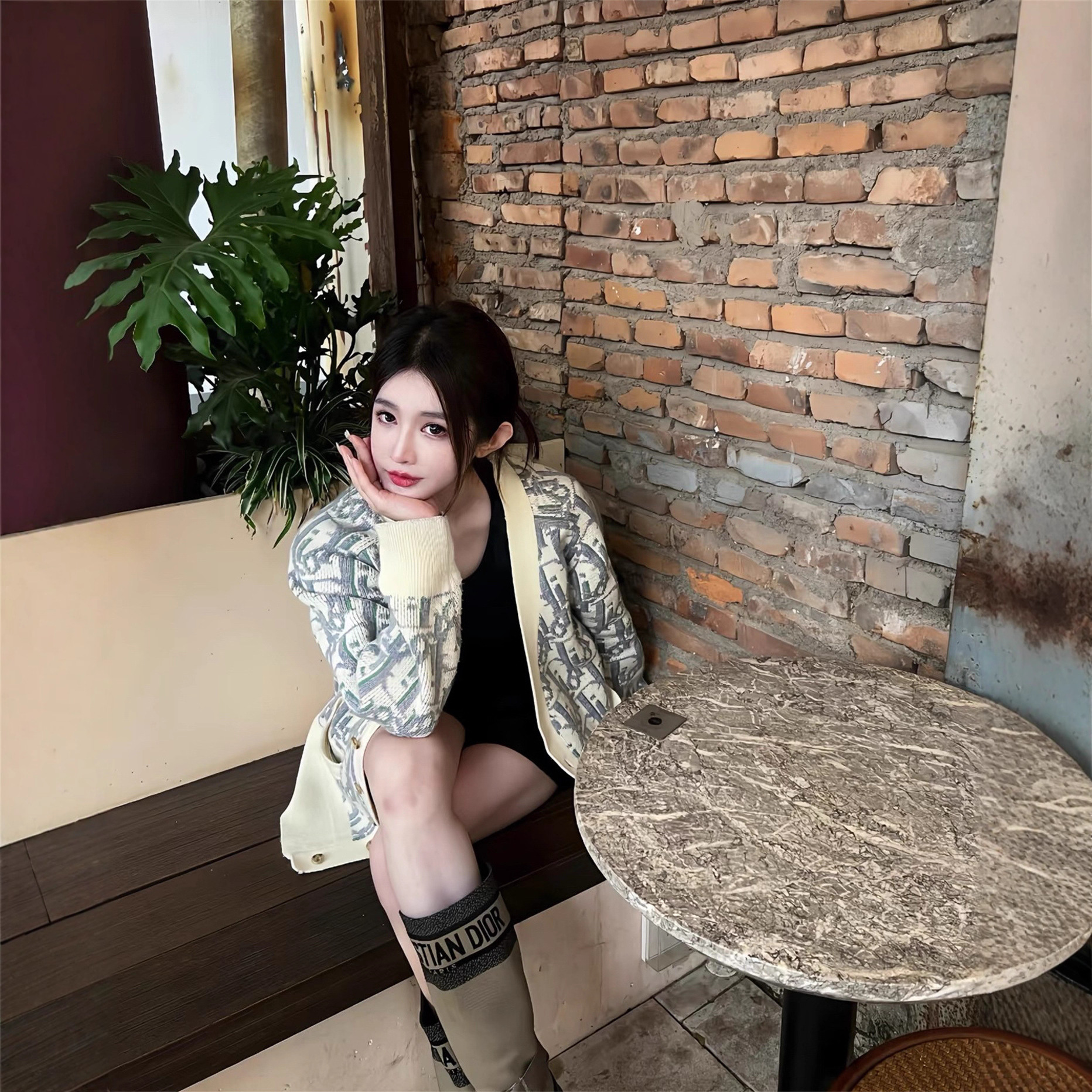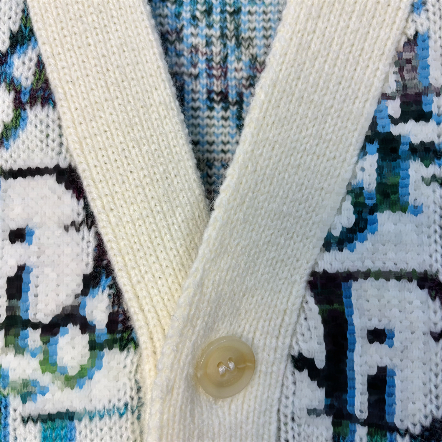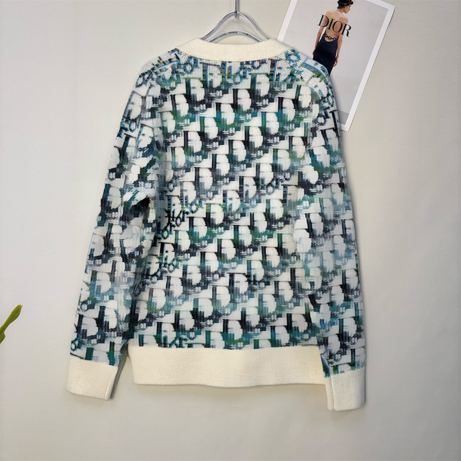 一件代发D家高版本满印提花渐变断染V领针织开衫男女同款毛衣外套