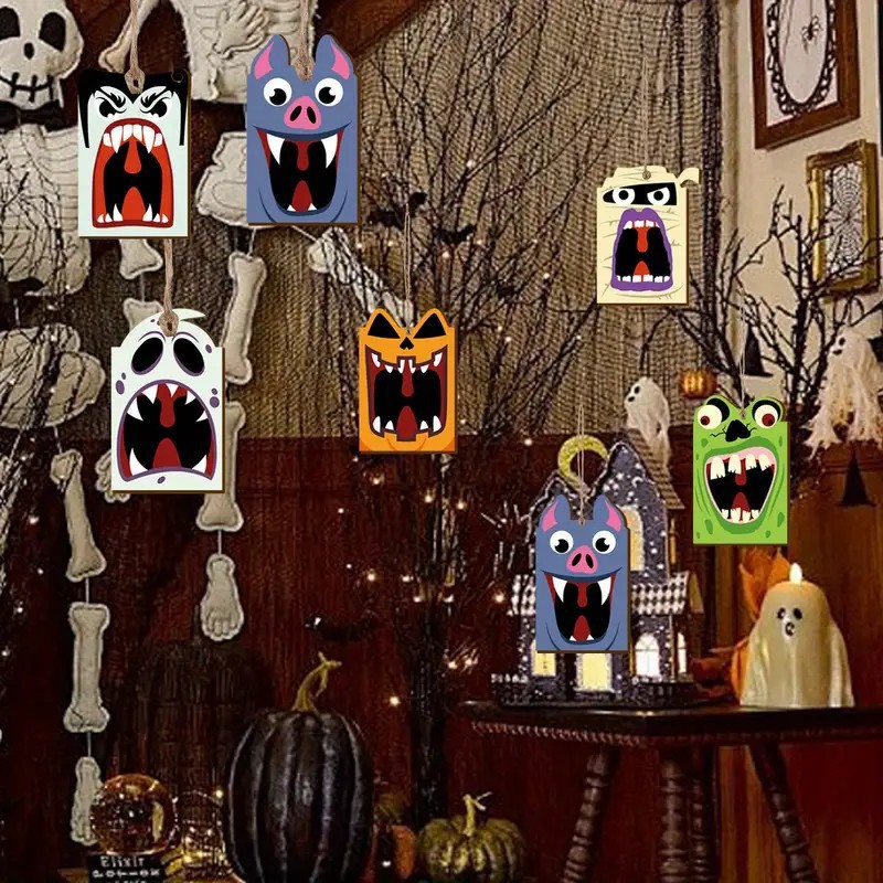 跨境万圣节木质套装挂件用于圣诞树装饰可爱创意庭院家居装饰品