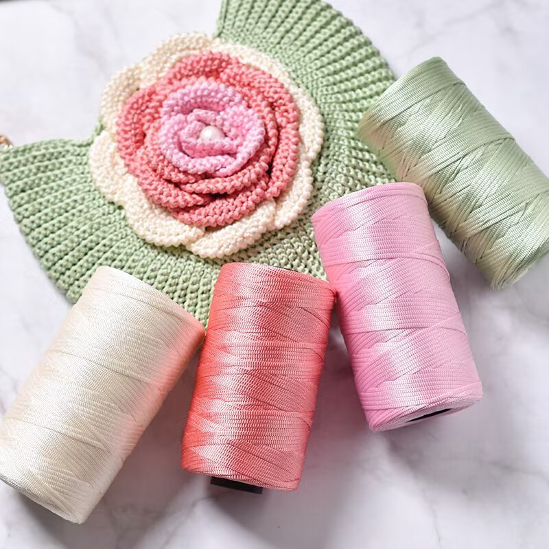 扁带丝光冰丝棉麻线编织手工diy手编帽子遮阳帽钩针包包坐垫毛线