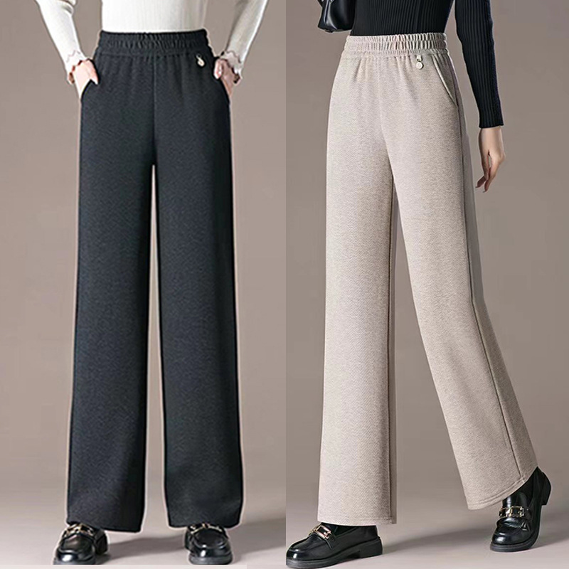 2025秋天中年女休闲裤宽松百搭妈妈松紧直筒裤女士显瘦中高腰女裤