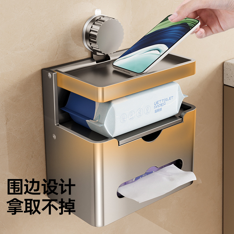 浴室卫生间吸盘免打孔纸巾盒墙上挂壁厕纸抽纸盒洗手间收纳置物架