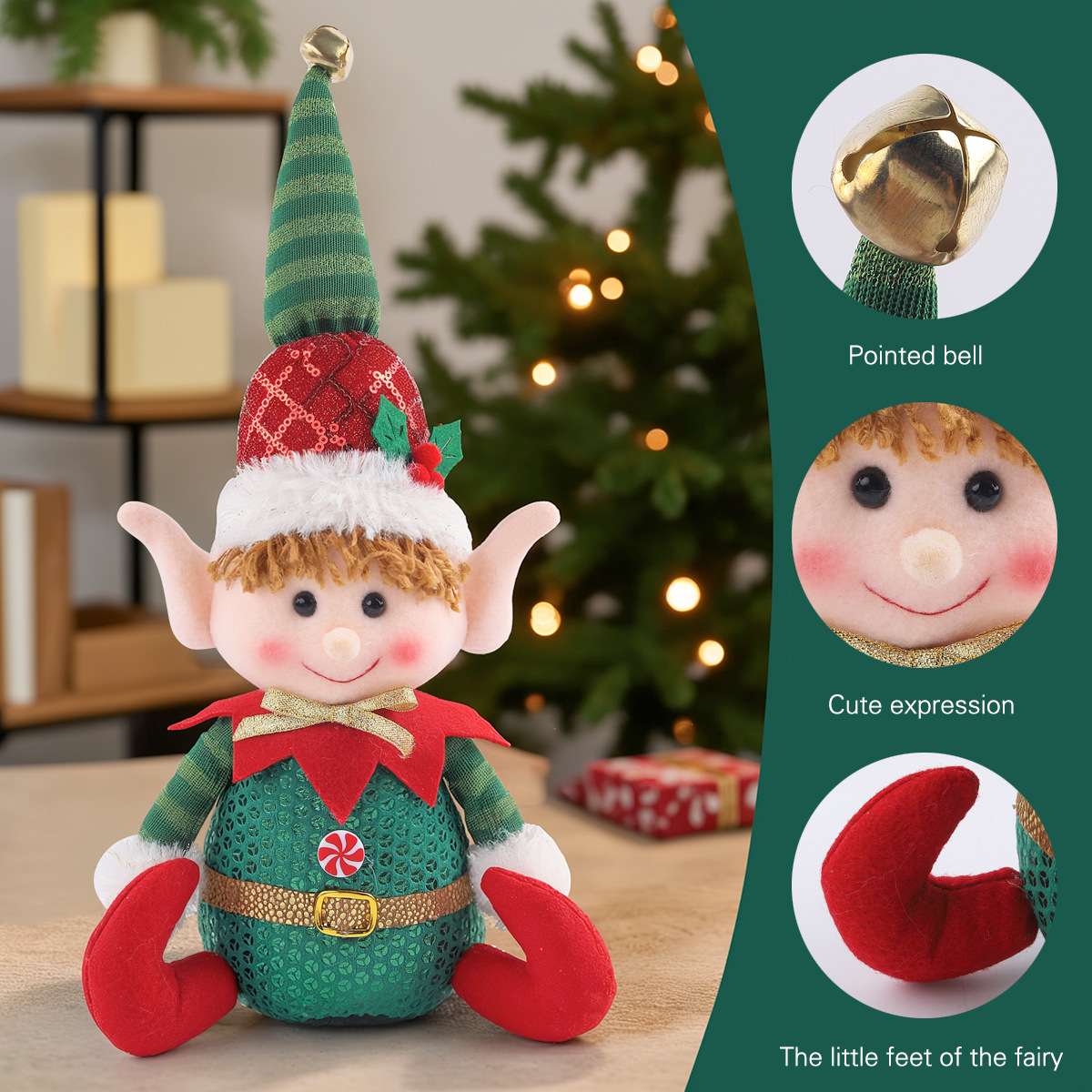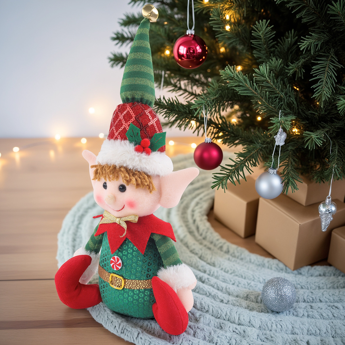 新品圣诞节亮片精灵公仔坐姿娃娃玩偶橱窗桌面摆件圣诞装饰品摆件