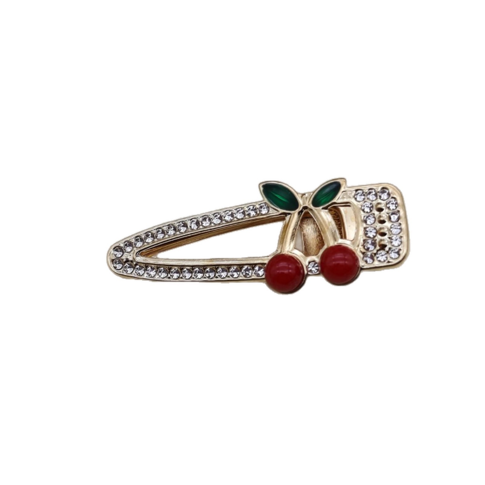 樱桃发夹女童公主气质鸭嘴夹甜美可爱风樱桃bb夹镶钻铁片刘海夹批