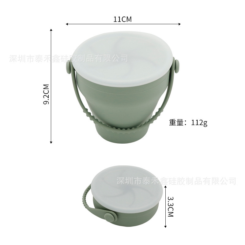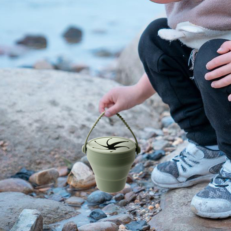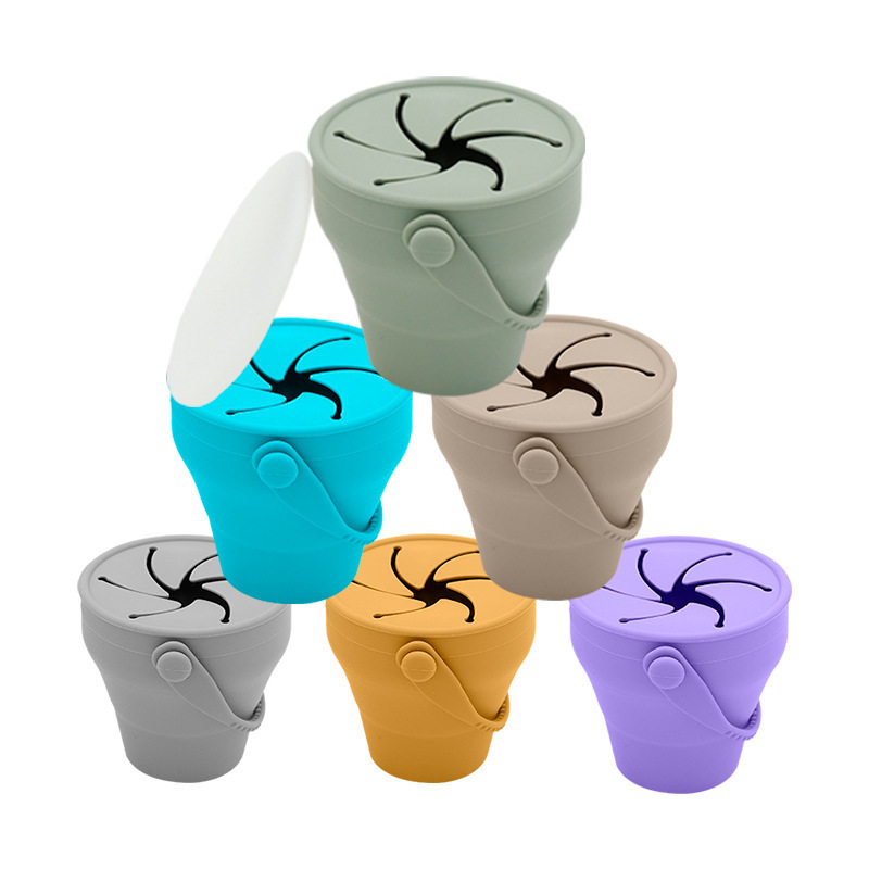 2025新款 亚马逊辅食碗儿童折叠硅胶零食碗便捷带肩手提杯