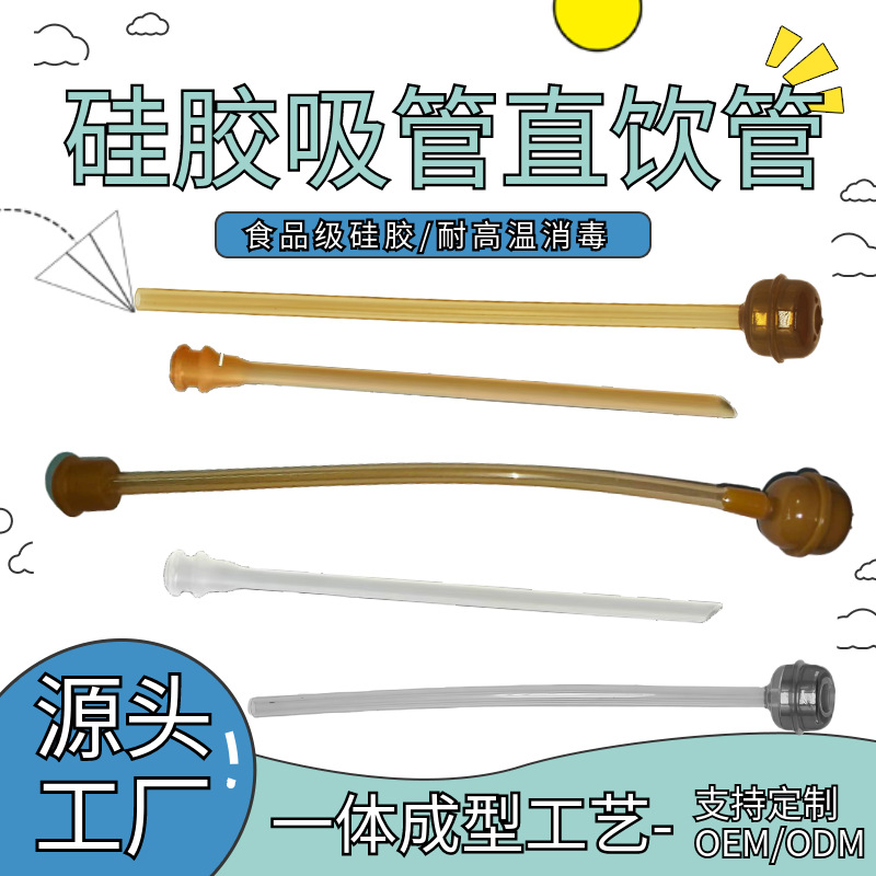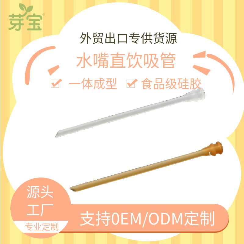 尺寸大小一体式液态硅胶水杯吸管直饮管纳米银色