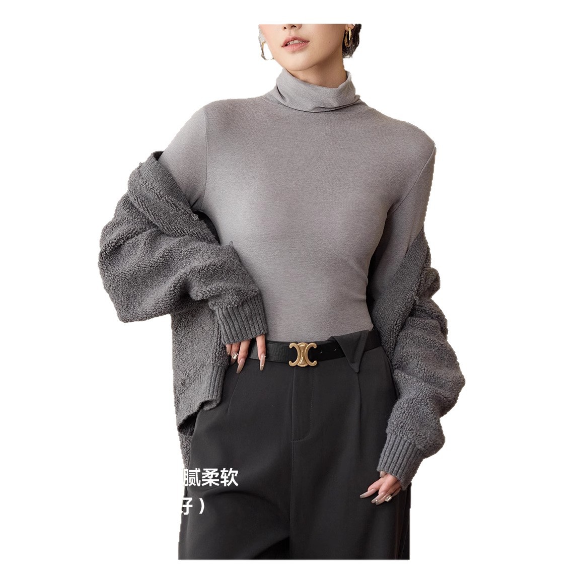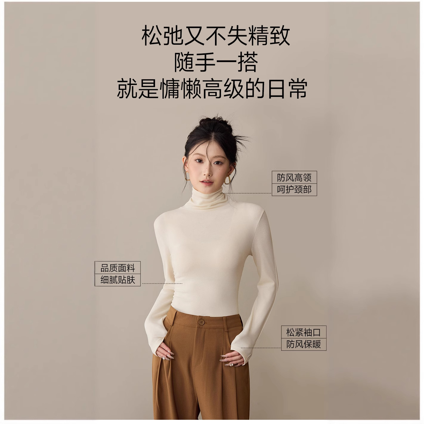 桑蚕丝莱赛尔中领堆堆领松弛慵懒会呼吸的高级保暖打底衫秋冬针织