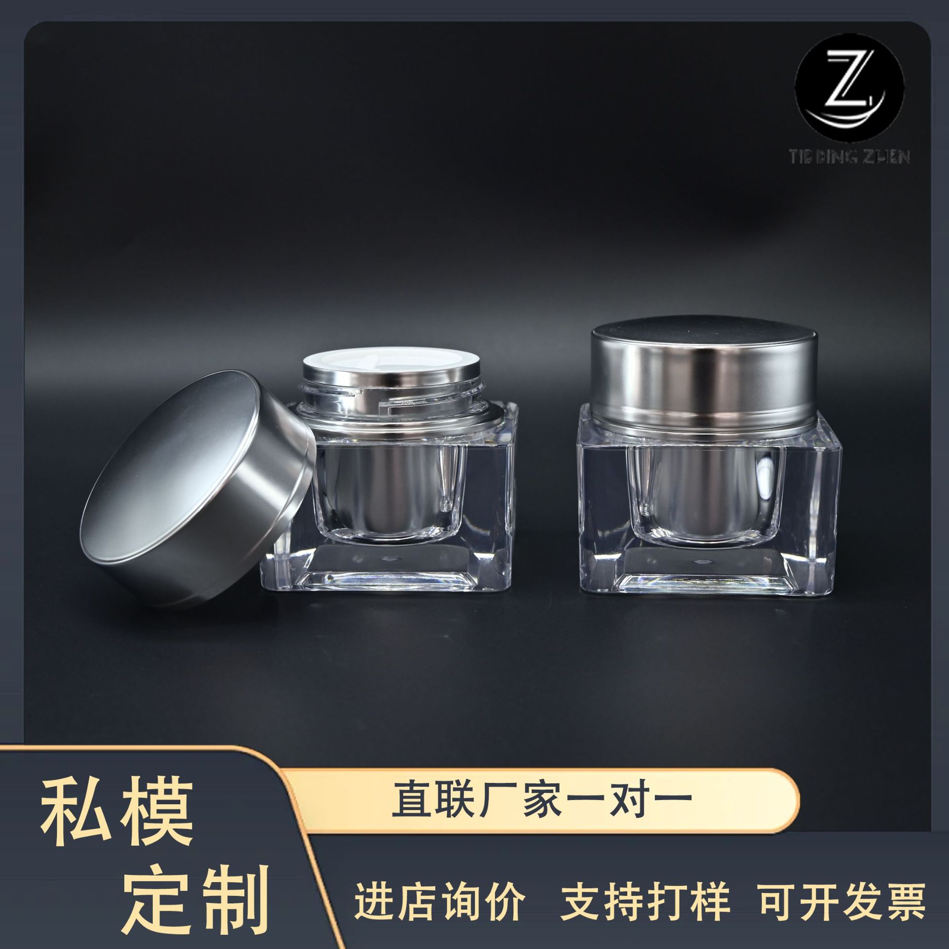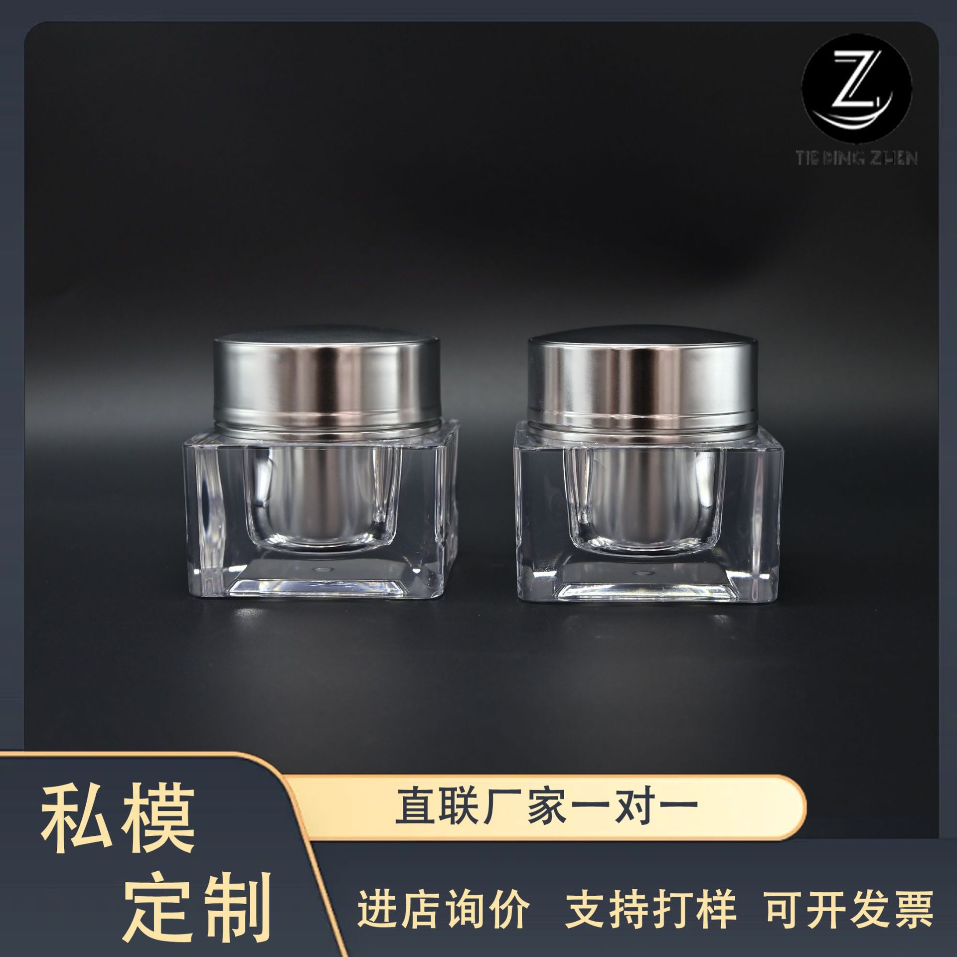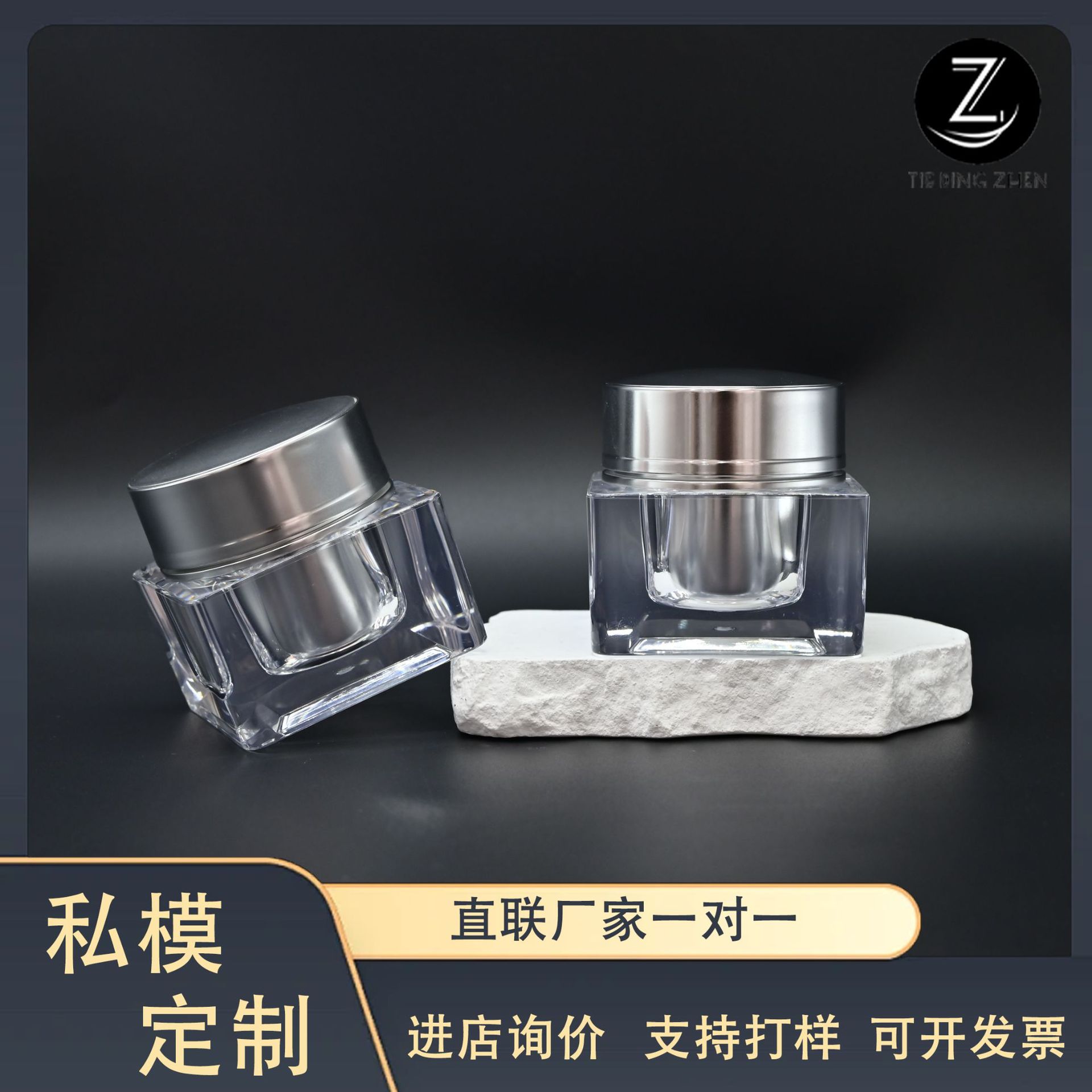 厂家供应30g 50G 亚克力高档四方镀银膏霜瓶 分装瓶