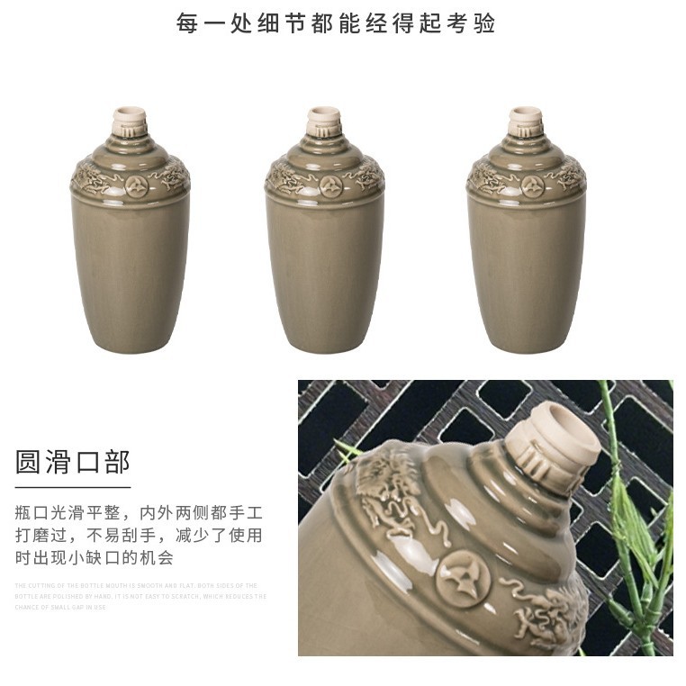 工厂仿古白酒壶卡其色酒瓶500ml陶瓷酒瓶定制密封原浆自酿酒缸