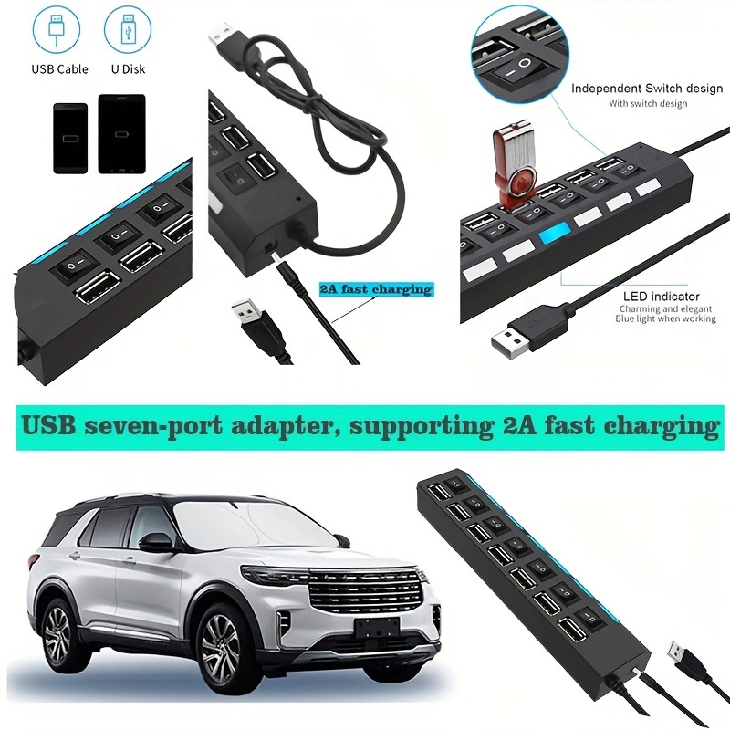 车载配件7端口电源分配器带独立开关适用汽车 车载配件2A快速同时