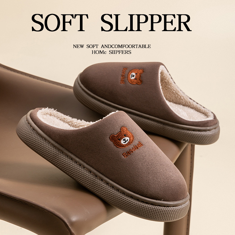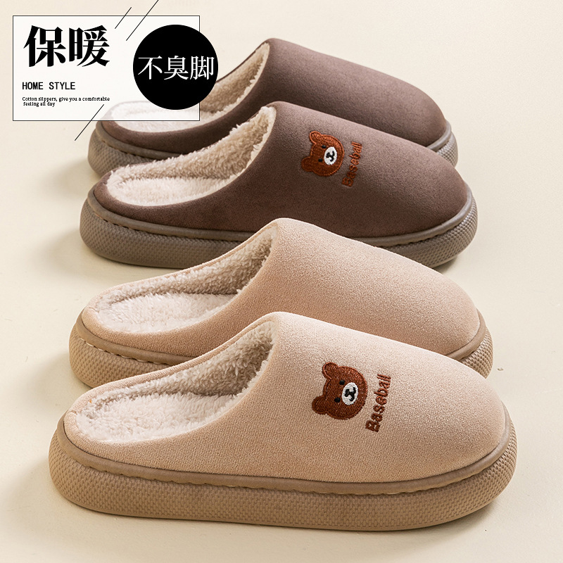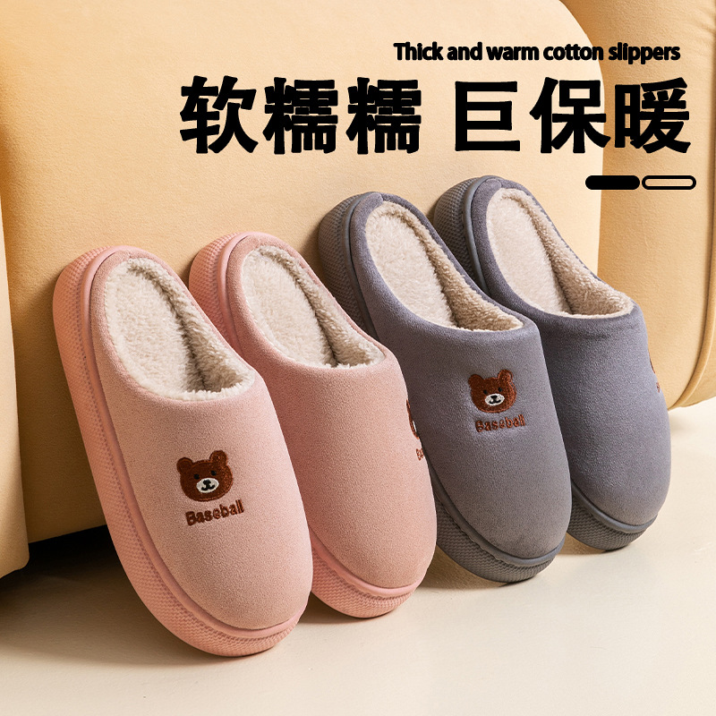 家用毛毛拖鞋女冬季可爱卡通刺绣毛绒保暖男士家居棉拖鞋男冬批发