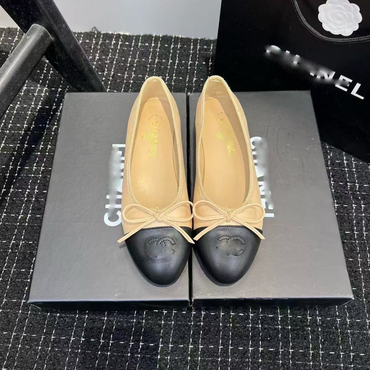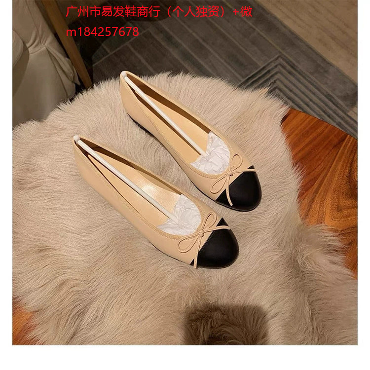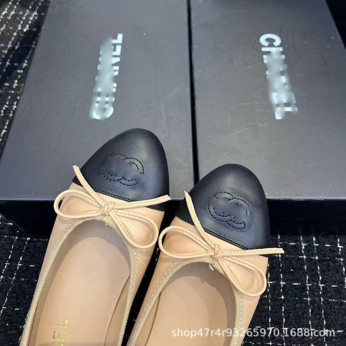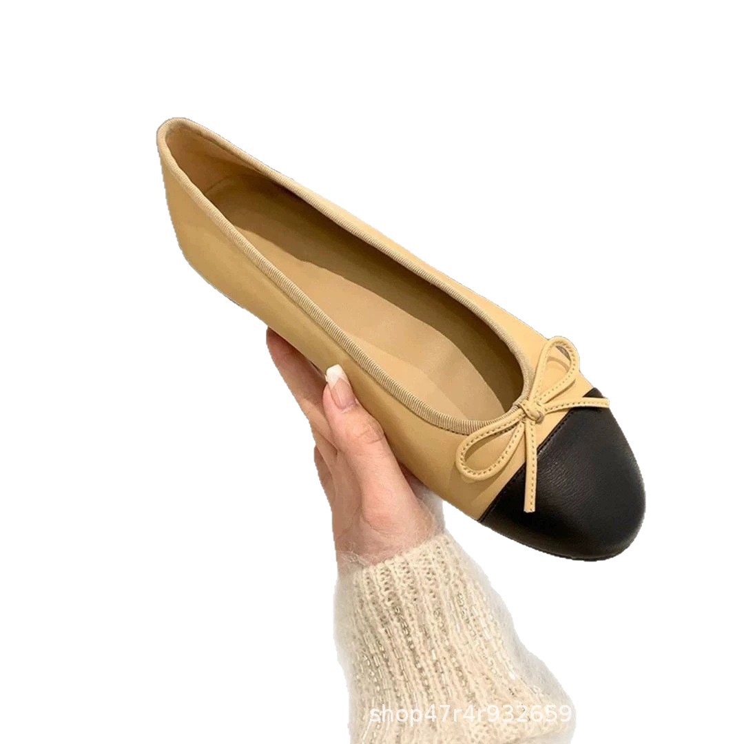 带元标 小香风平底真皮单鞋2025年新款圆头拼色蝴蝶结芭蕾舞鞋女
