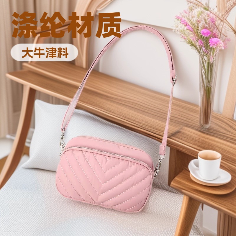 定制V字绗缝斜跨包 大开口分区收纳轻便耐磨韩版时尚百搭单肩小包