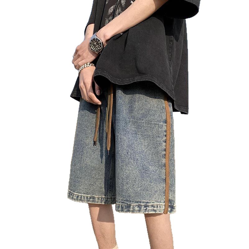 裤子男潮流水洗复古牛仔短裤男夏季宽松高街美式痞帅休闲五分中裤