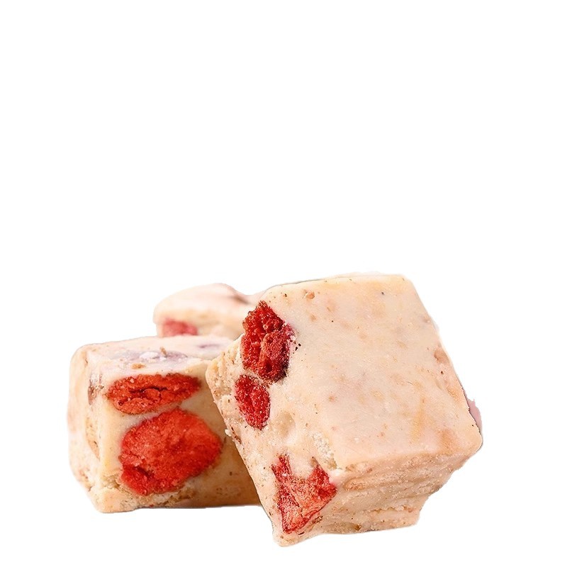 草莓羊奶芙现货供应微甜块状草莓羊奶芙盒装雪花酥草莓味