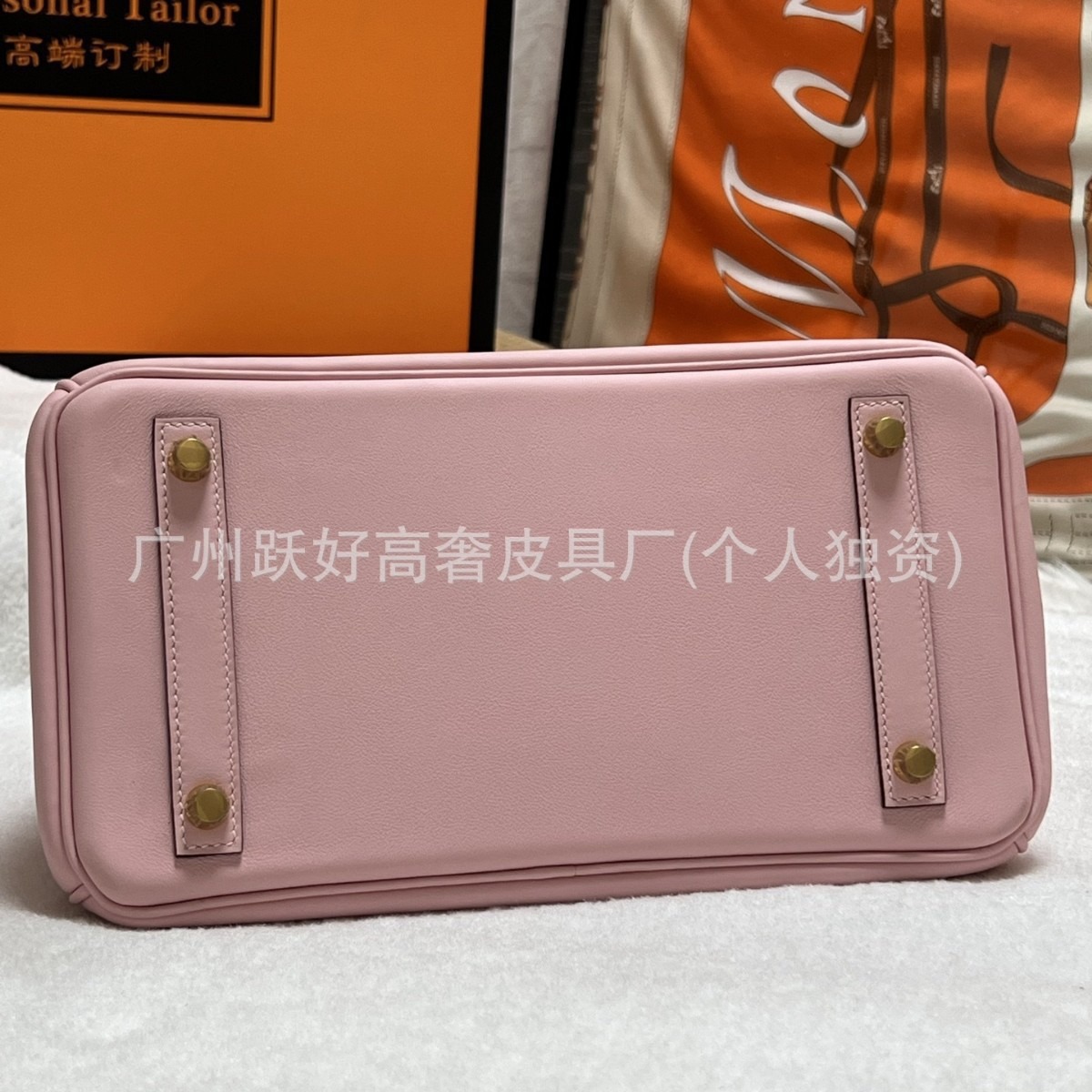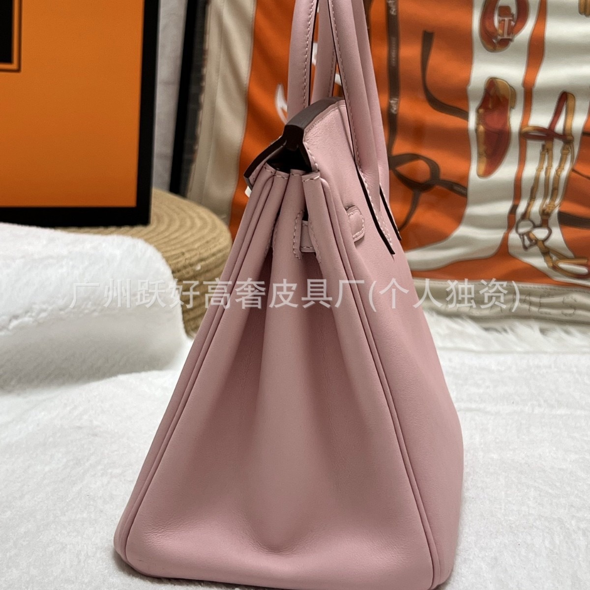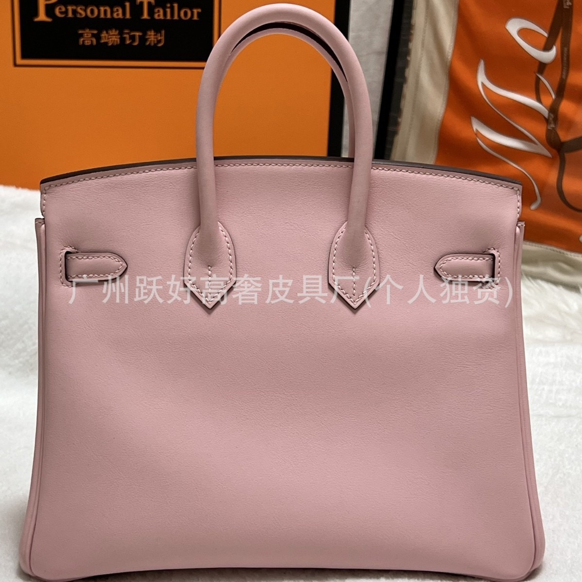 H家铂金 30 樱花粉原厂swift皮纯手工手缝蜡线缝制手提女包铂金包
